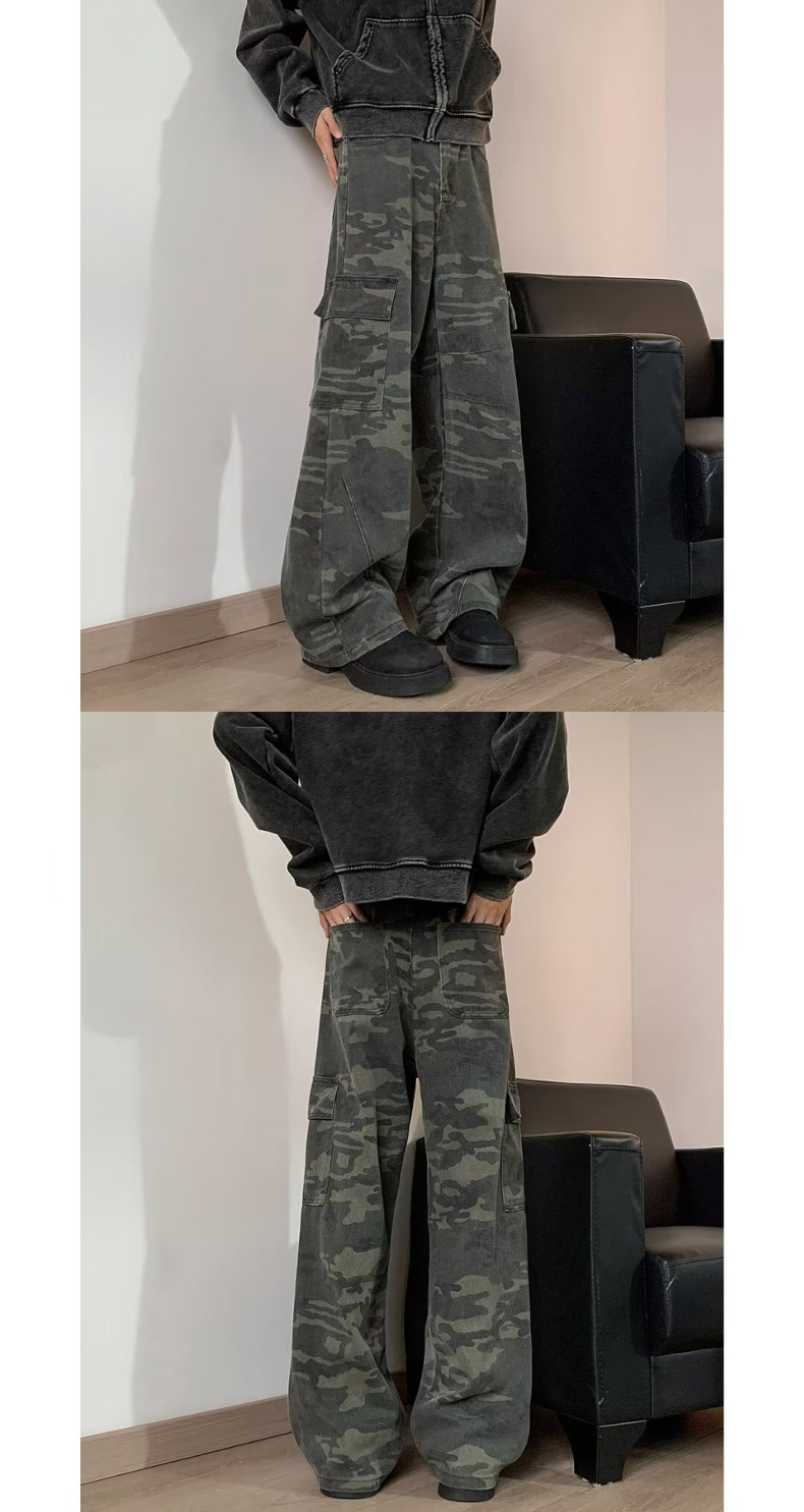 위장 바지 남성 가을 미국식 복고풍 목재 바지 봄과 가을 슬림 핏 스트레이트 바지