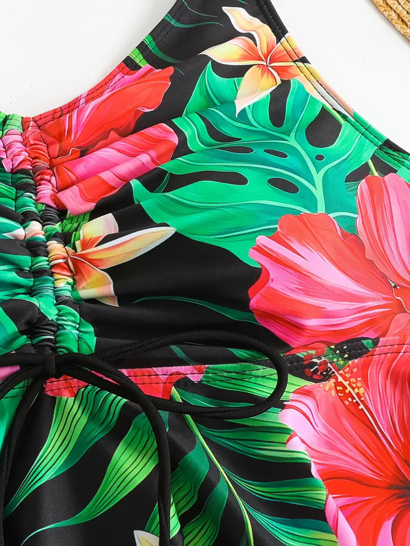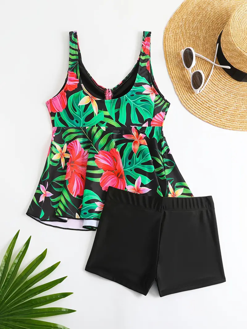새로운 2024 유럽과 미국의 패션 스커트 분할 인쇄 수영복 여성 아마존 모여와 가슴 패드 보수 여성