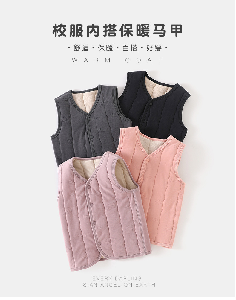 어린이 조끼 기모 두꺼운 학교 제복 유물 소년 및 어린이의 탑베이스 따뜻한 조끼 겨울 조끼 착용 아기