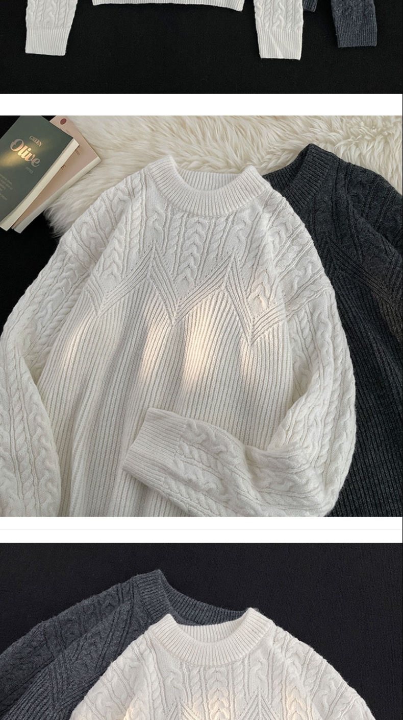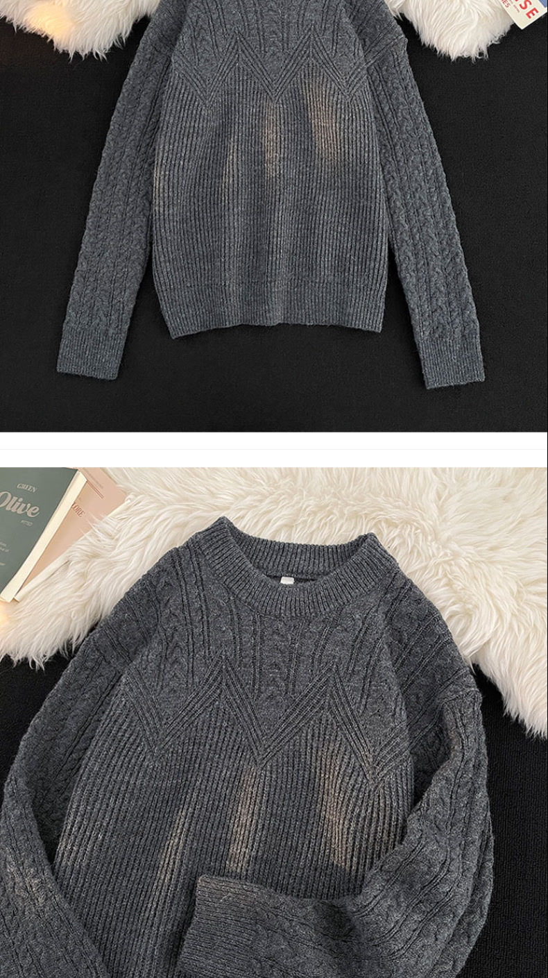 그레이 스타일 그레이 트위스트 스웨터 남자 봄과 가을 미국 스타일 레트로 느슨한 게으른 스타일 커플 풀오버 니트 스웨터스토어 가기