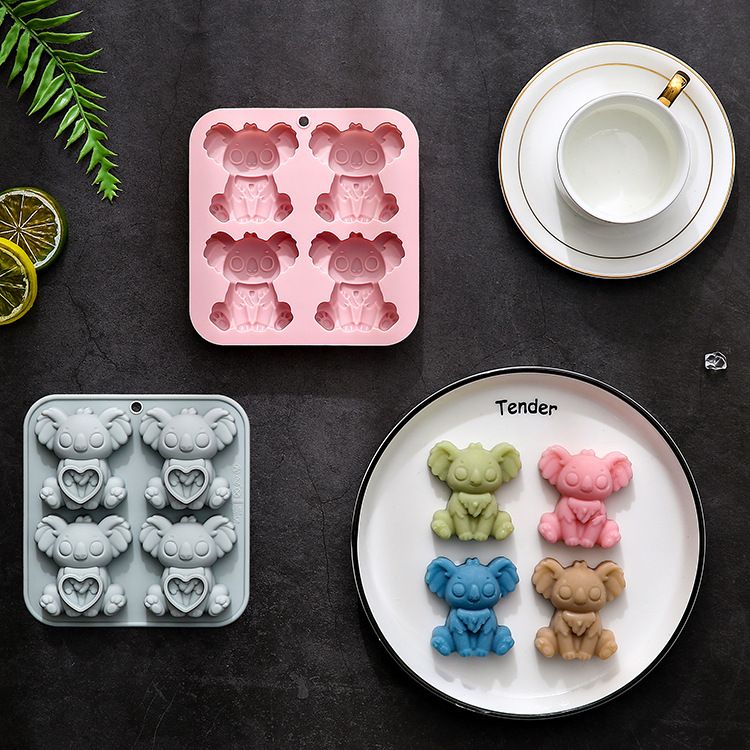 재고 4 코알라 모양 실리콘 금형 부드러운 캔디 푸딩 케이크 금형 베이킹 도구 드롭 접착제 초콜릿 금형