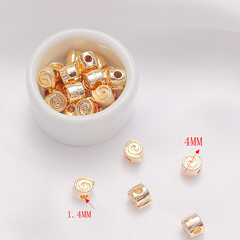 14K 골드 컬러 유지 매트 골드 롤리팝 양면 작은 꽃 큰 구멍 드럼 구슬 DIY 팔찌 목걸이 수제 보석 액세서리스토어 가기