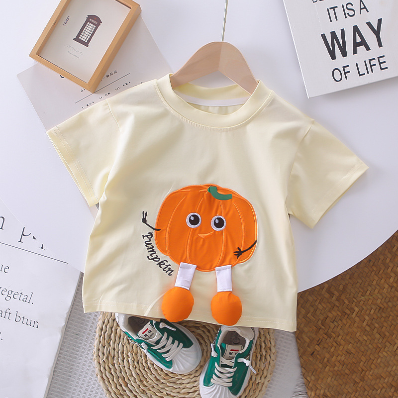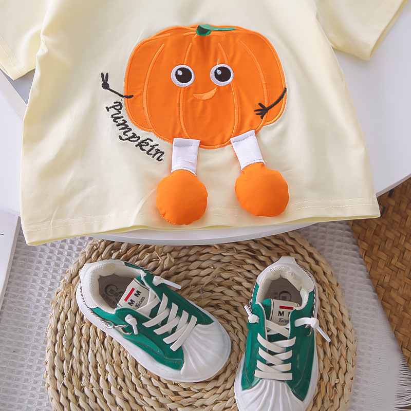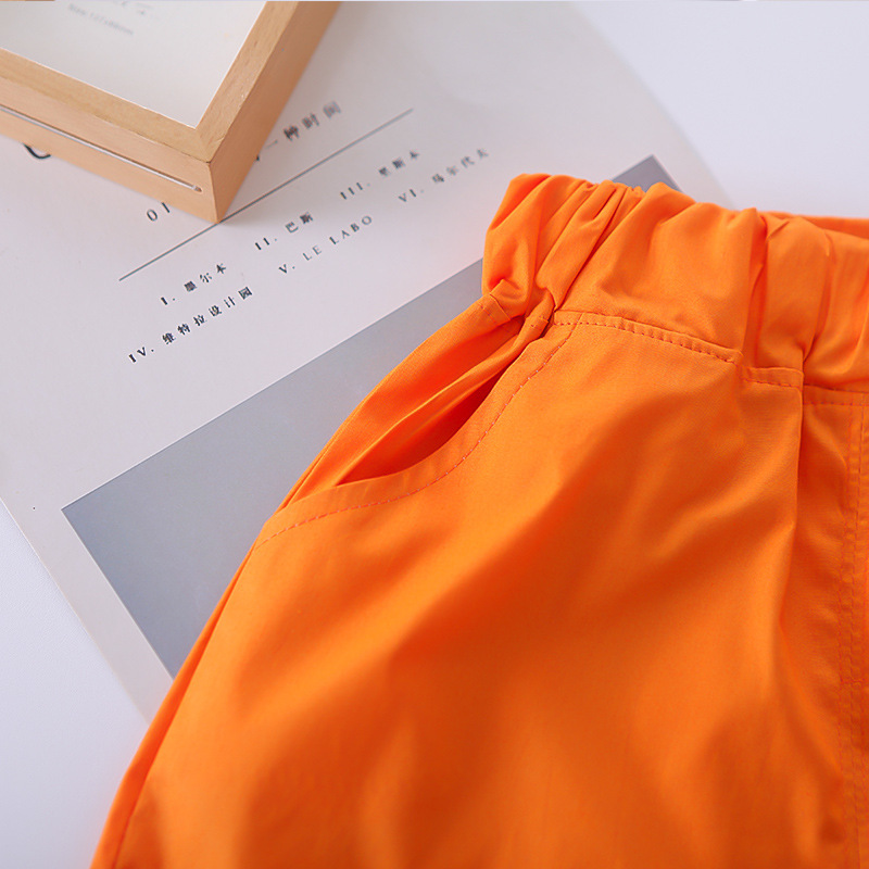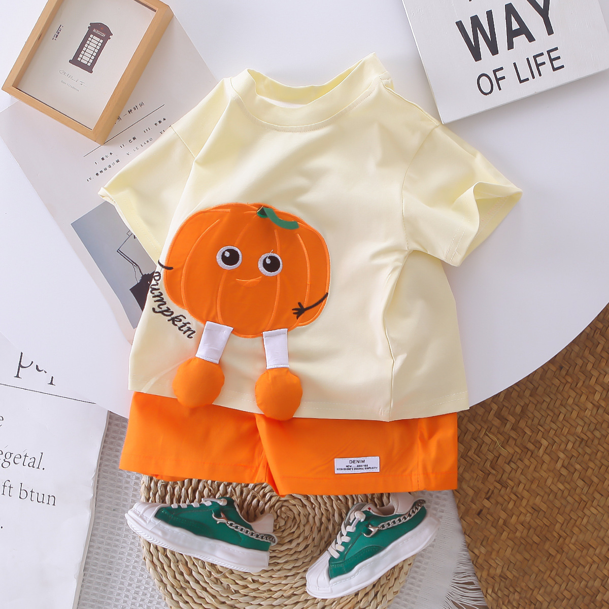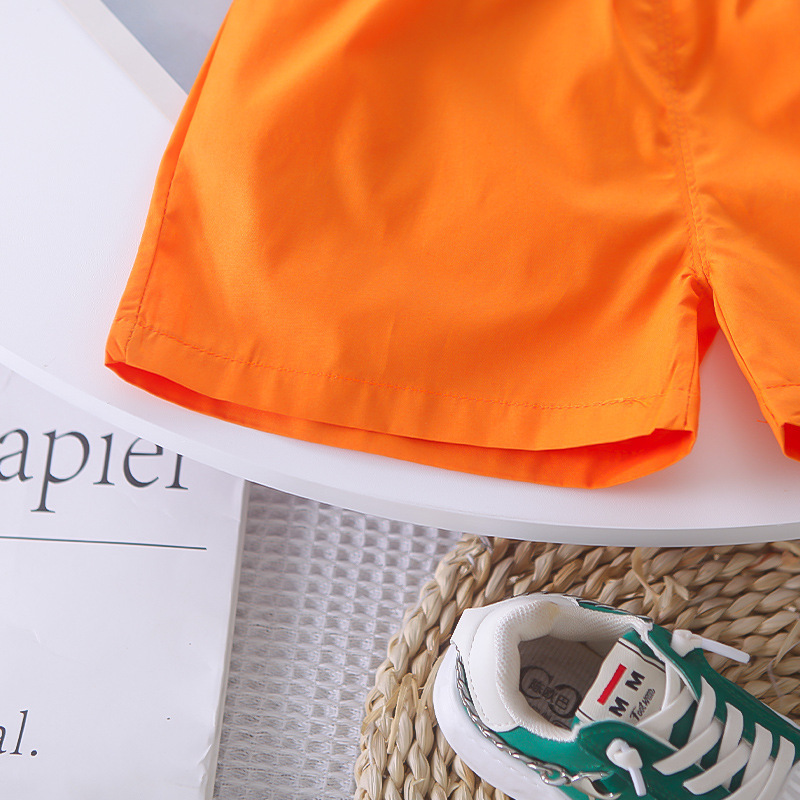 새로운 아기 패션 세련된 어린이 세트 호박 크로스 바디 백 반팔 세트 트렌디 한 여름 소년 반팔 세트