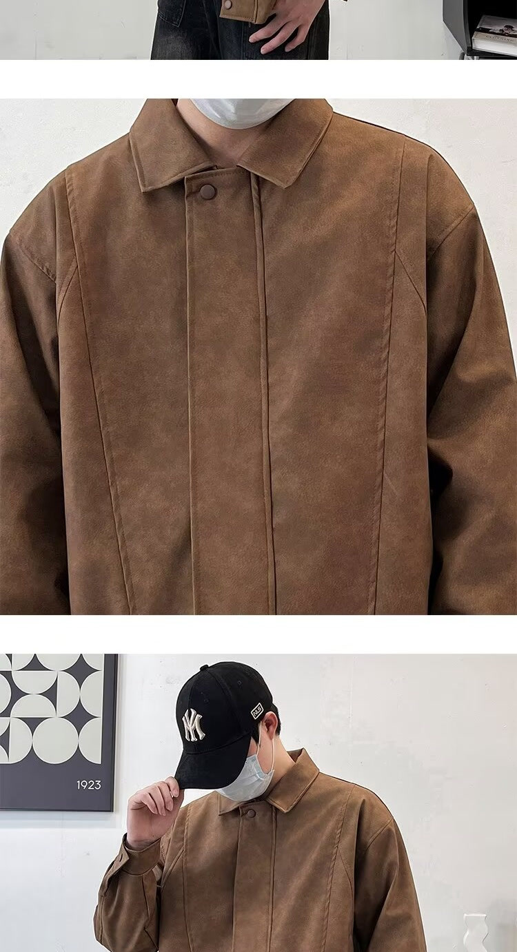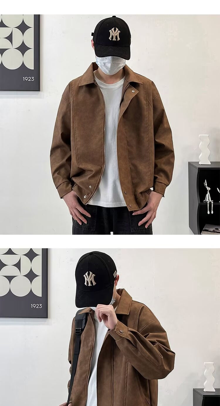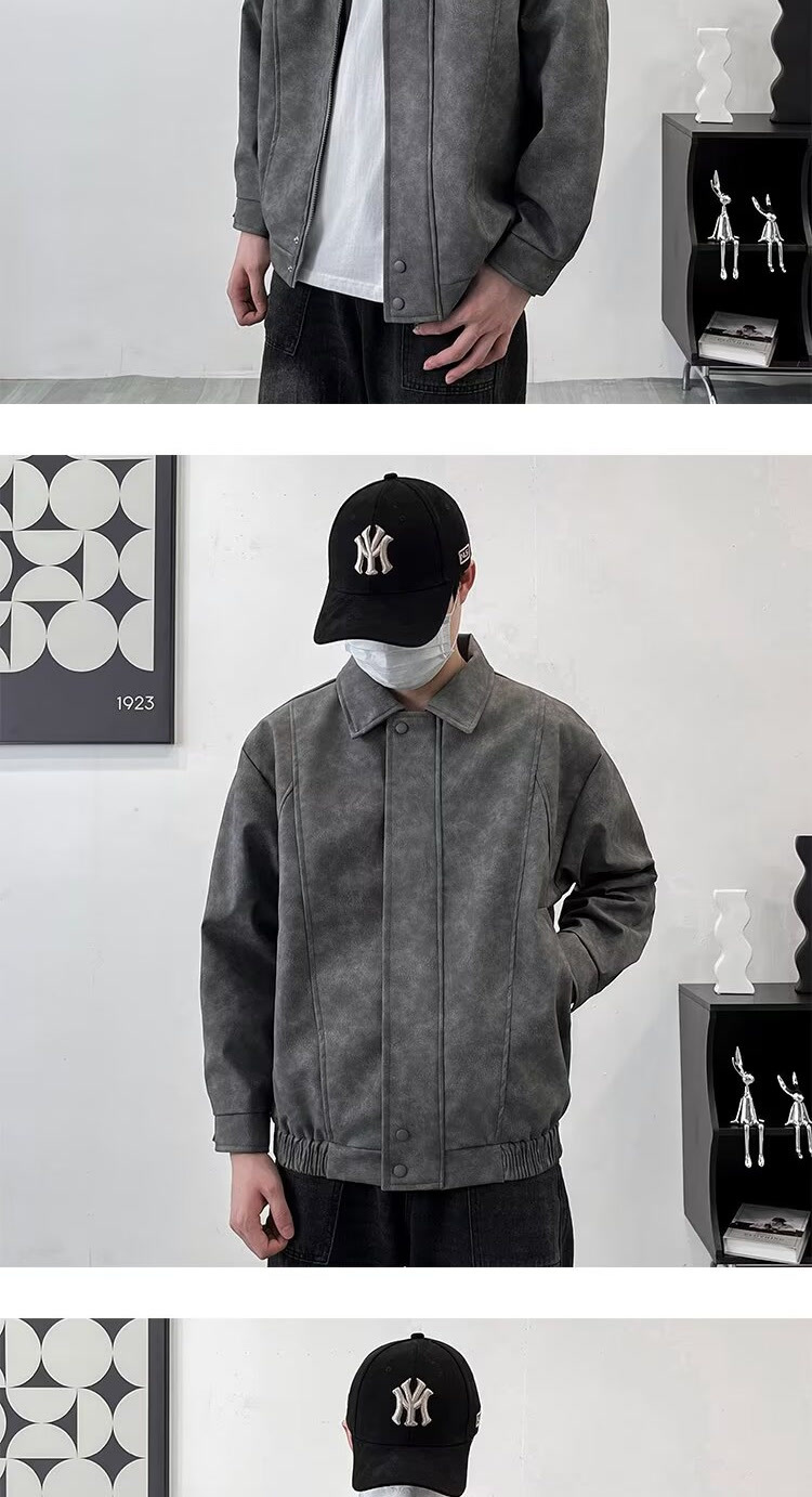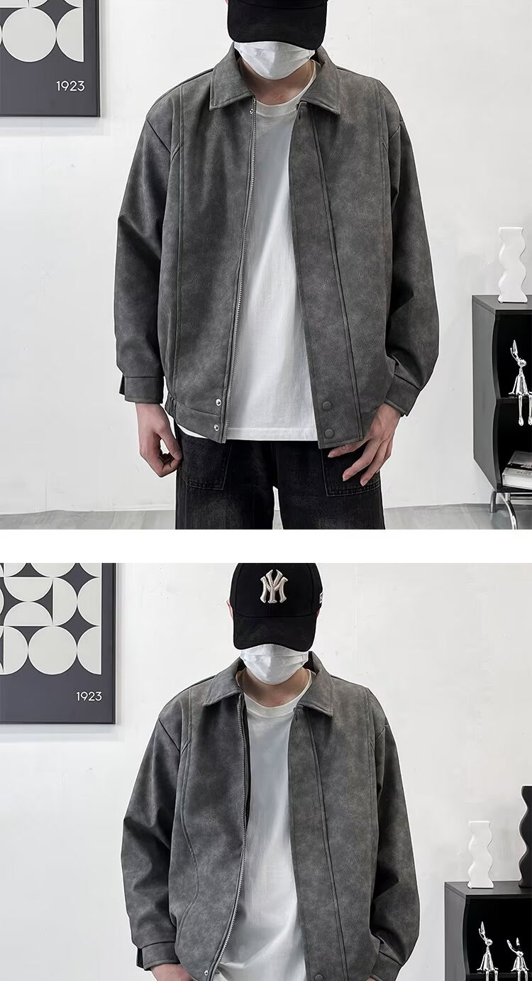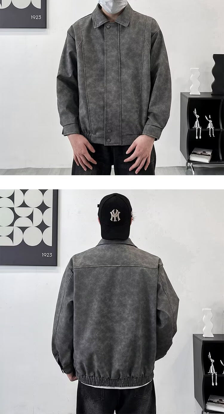 아메리칸 스타일 레트로 느슨한 가죽 자켓 남자 코트 가을 유행 PU 가죽 자켓 남성과 여성의 방수 바이커 세트스토어 가기