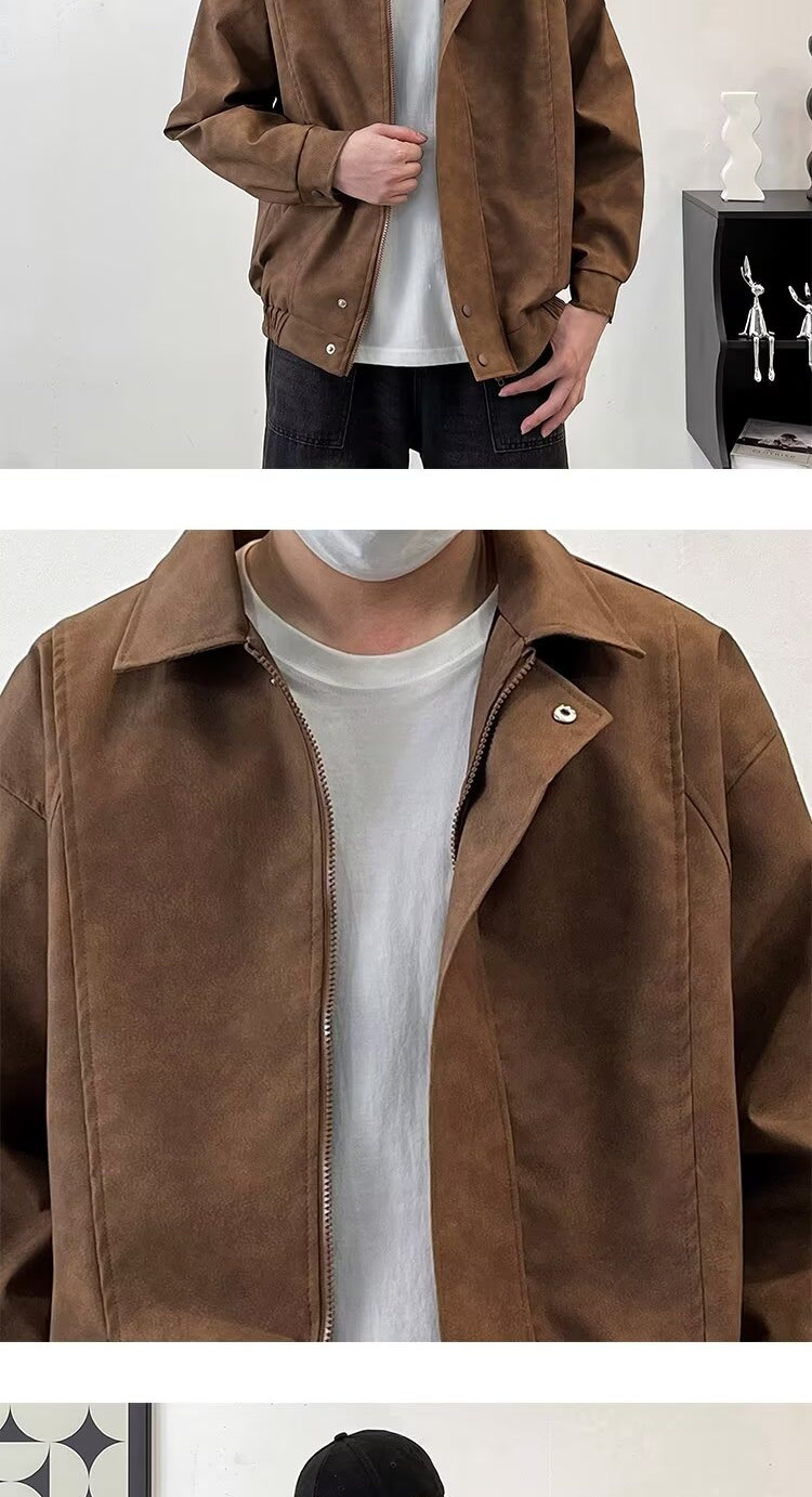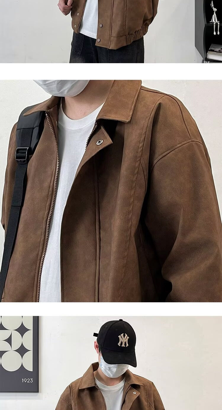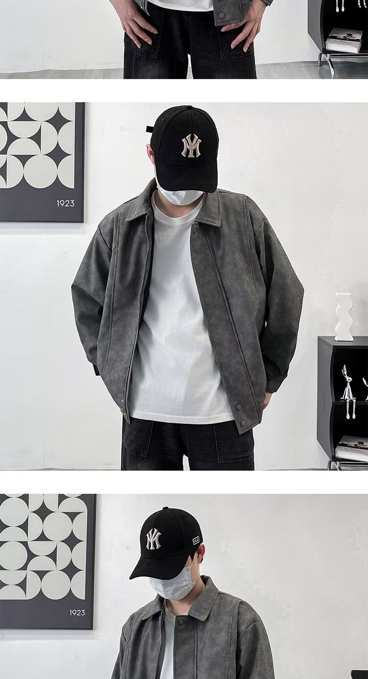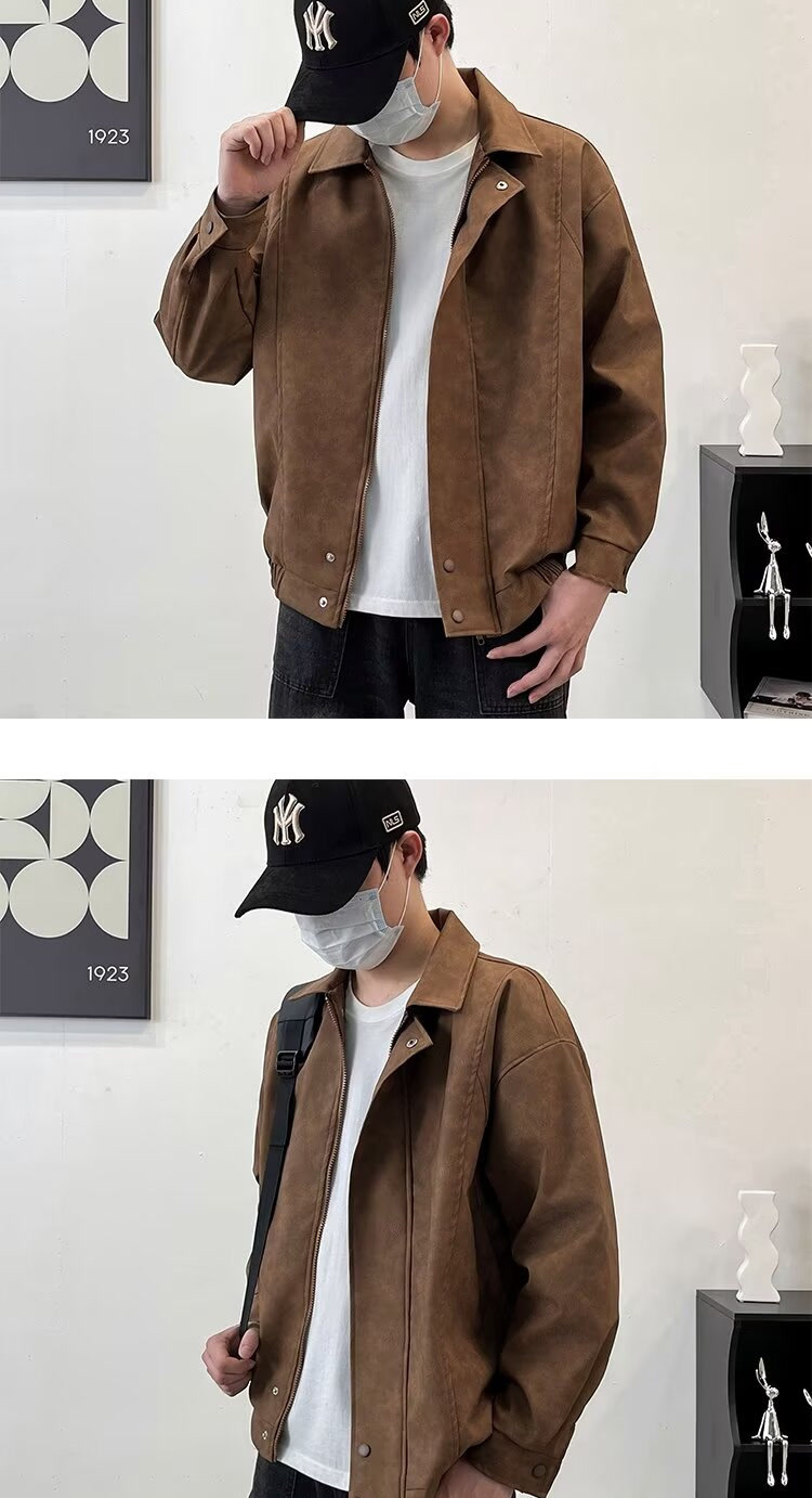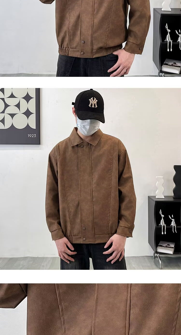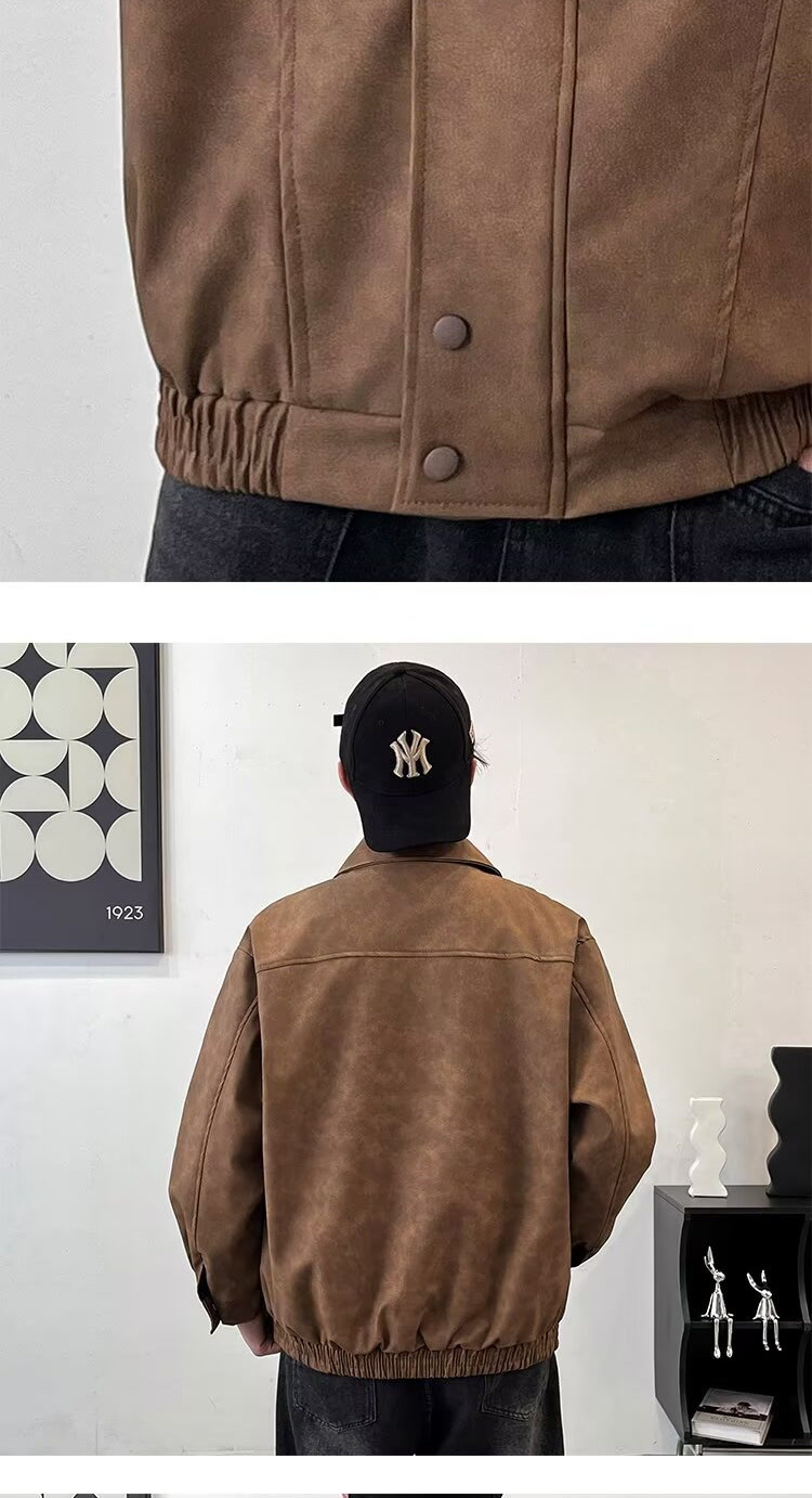 아메리칸 스타일 레트로 느슨한 가죽 자켓 남자 코트 가을 유행 PU 가죽 자켓 남성과 여성의 방수 바이커 세트스토어 가기