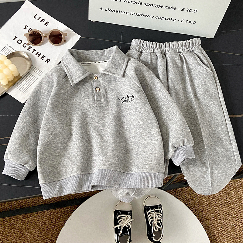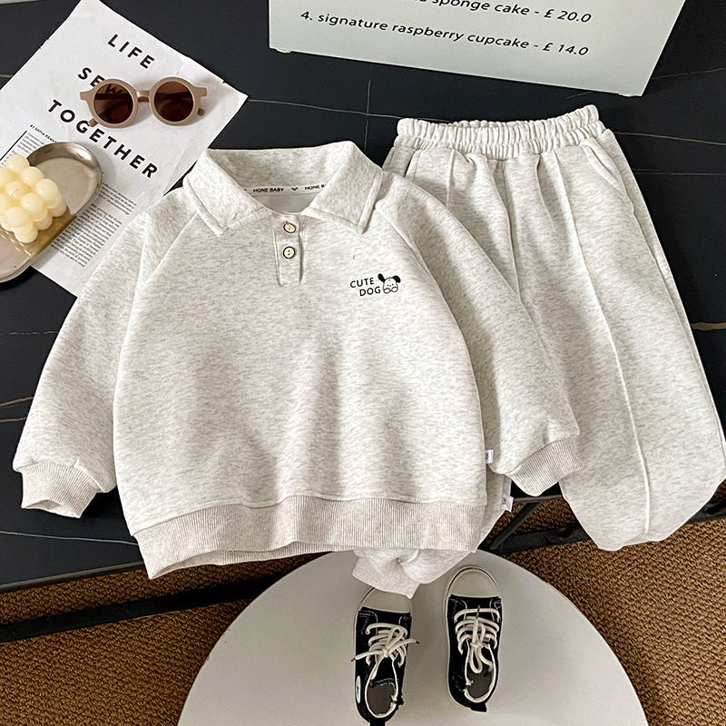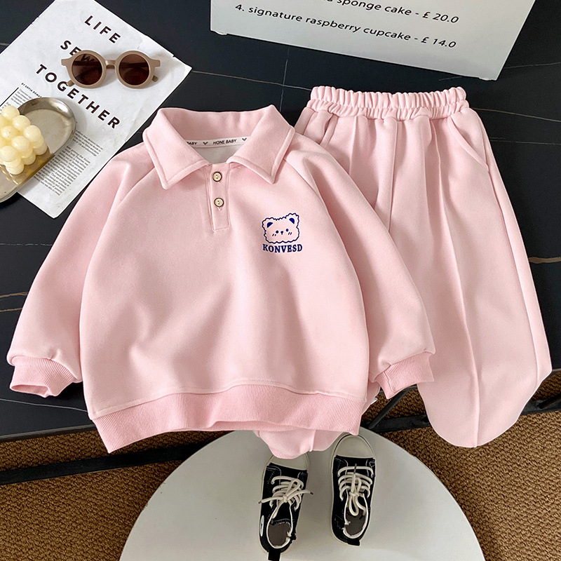 가을 2024 남학생과 여학생을위한 새로운 어린이 스웨터 세트 한국 캐주얼 옷깃 스웨터 바지 투피스 다용도스토어 가기