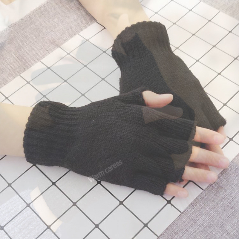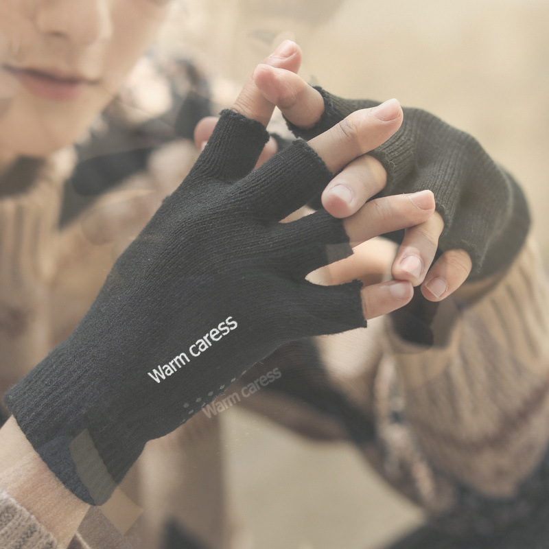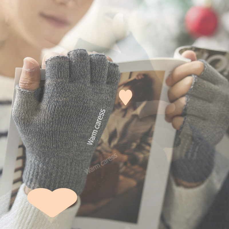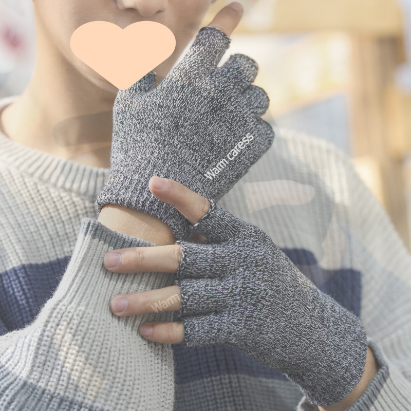 남성과 여성을위한 하프 핑거 장갑 겨울 따뜻한 두꺼운 운전 승마 반 손가락 무익한 학생들의 글쓰기 햄-울 장갑스토어 가기