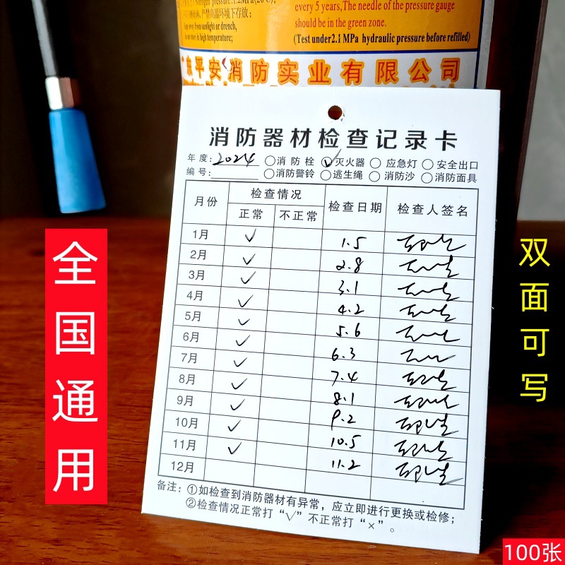 소화기 검사 카드 화재 장비 소화전 기록 카드 월간 검사 기록 양식 양면 100 도매