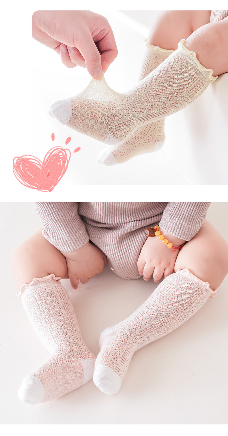 아기 양말 여름 얇은 메쉬 아기 신생아 클래스 A 면 양말 여름 귀 뼈없는 느슨한 긴 튜브