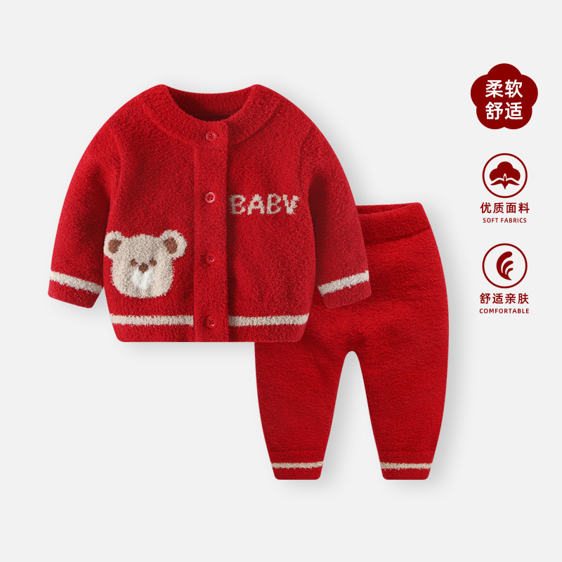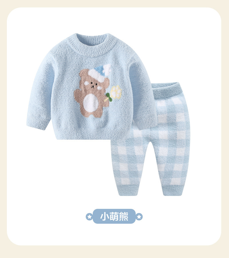 어린이 반 벨벳 스웨터 가을과 겨울 남성 아기 겨울 스웨터 아기 홈 의류 파자마 여성 보물 따뜻한 세트