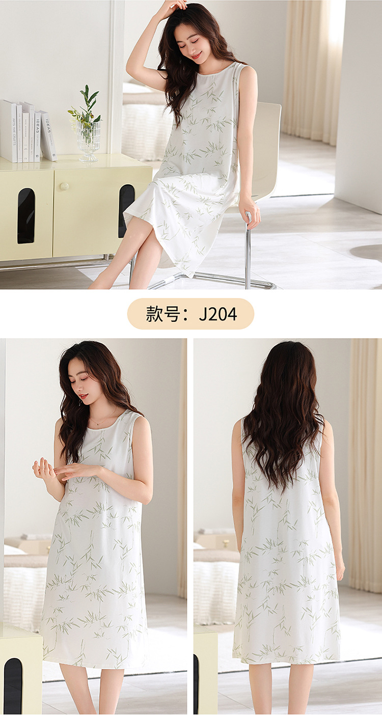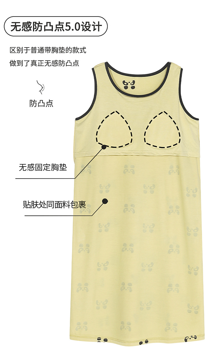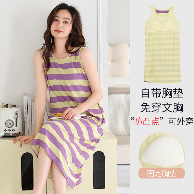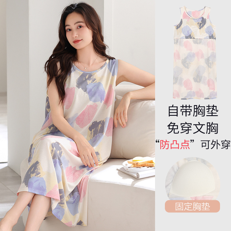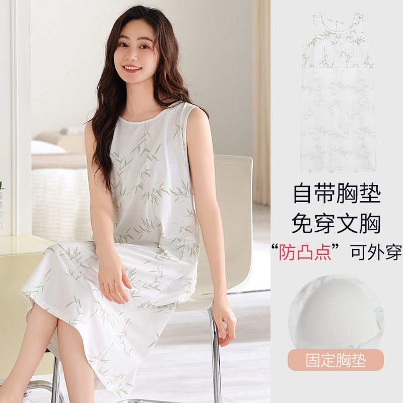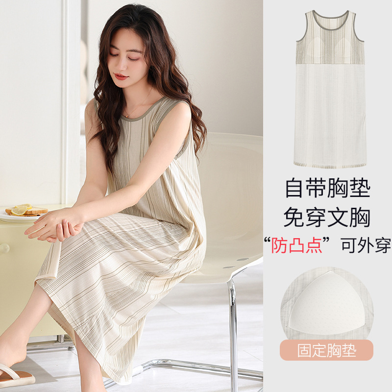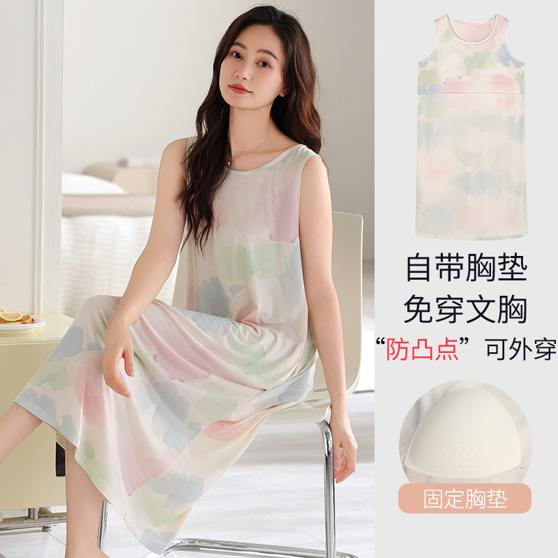 민소매 조끼 가슴 패드와 얇은 모달 나이트 드레스 여성의 여름 잠옷 느슨한 중간 길이 귀여운 홈 옷스토어 가기