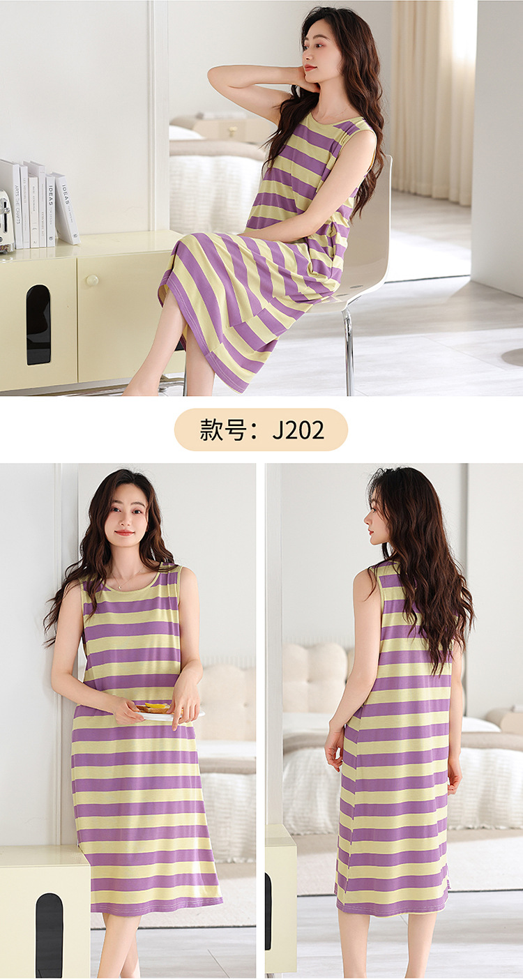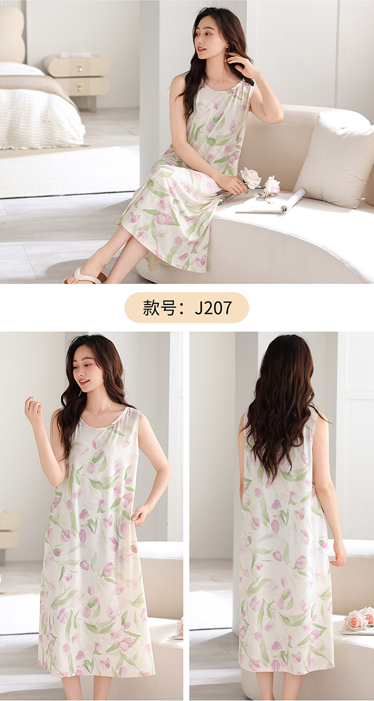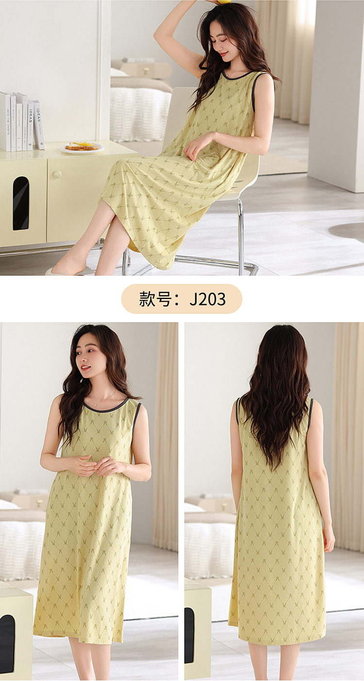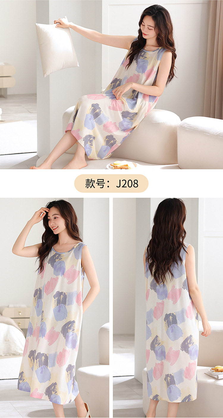 민소매 조끼 가슴 패드와 얇은 모달 나이트 드레스 여성의 여름 잠옷 느슨한 중간 길이 귀여운 홈 옷스토어 가기
