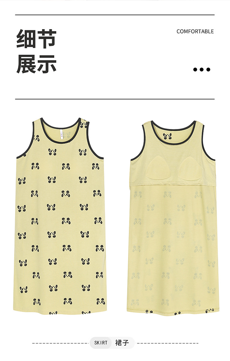 민소매 조끼 가슴 패드와 얇은 모달 나이트 드레스 여성의 여름 잠옷 느슨한 중간 길이 귀여운 홈 옷