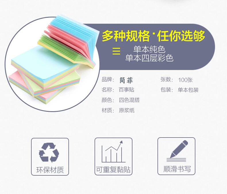 • [강력한 접착력 업그레이드] 정사각형/4색/1권 100매