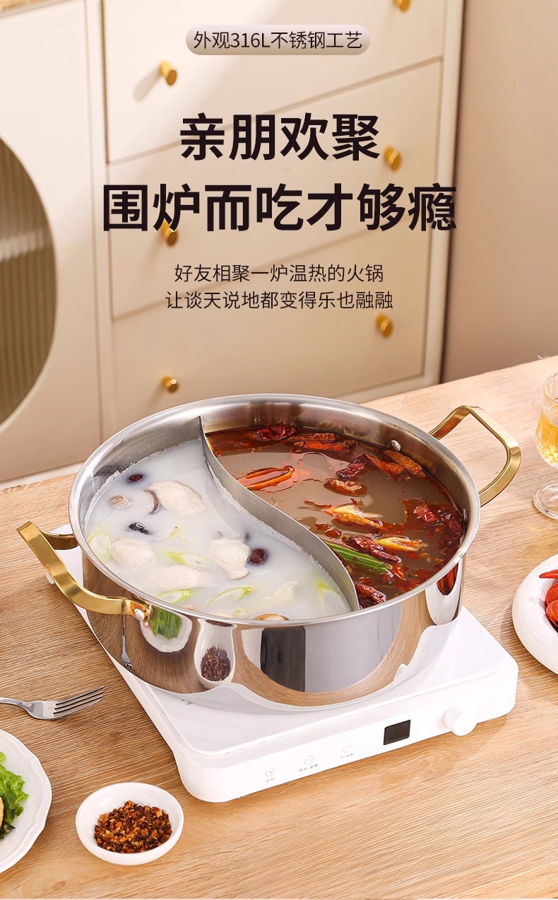 • [316L 의료용강] 32CM 원앙냄비 (특대형)