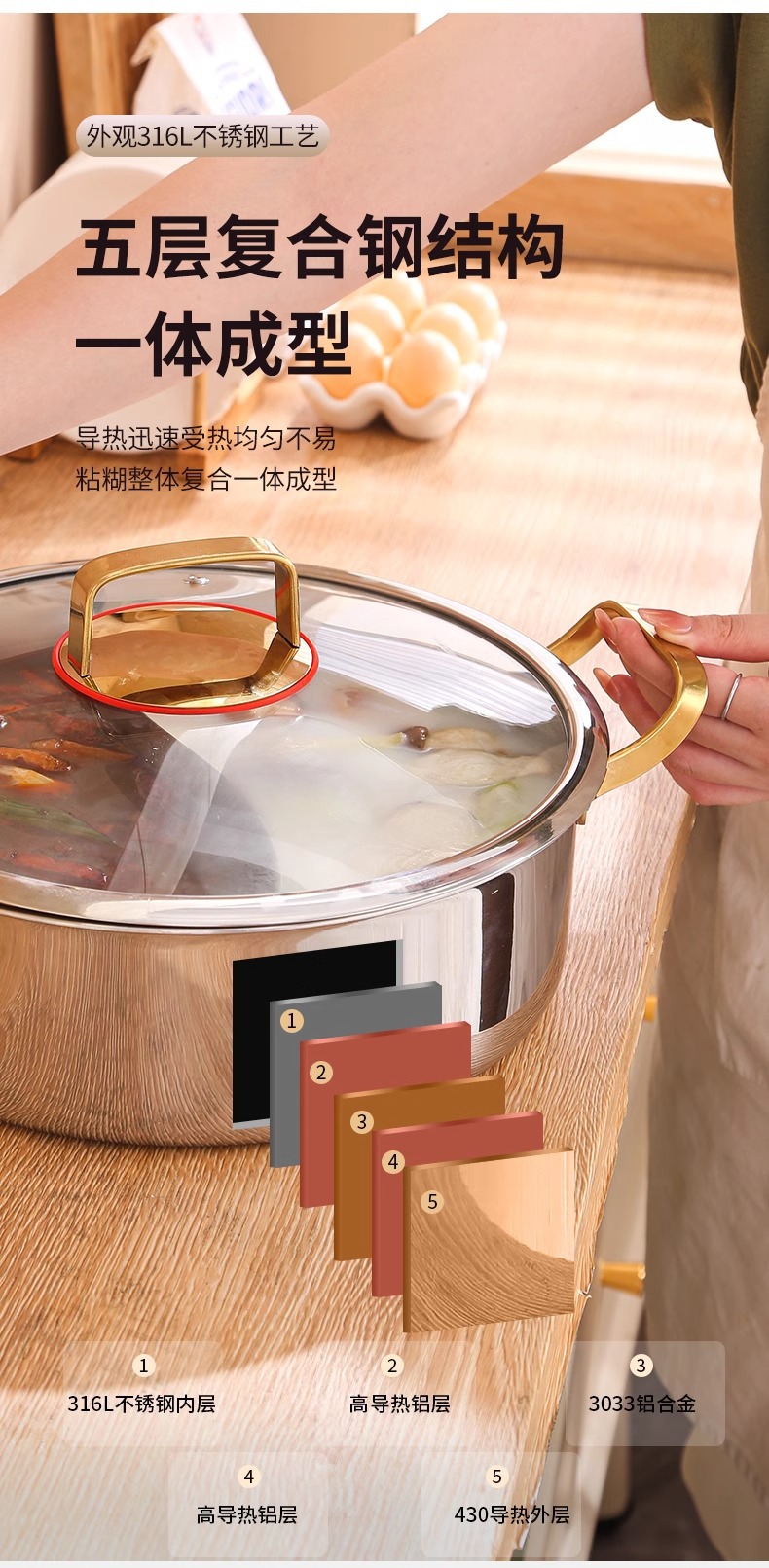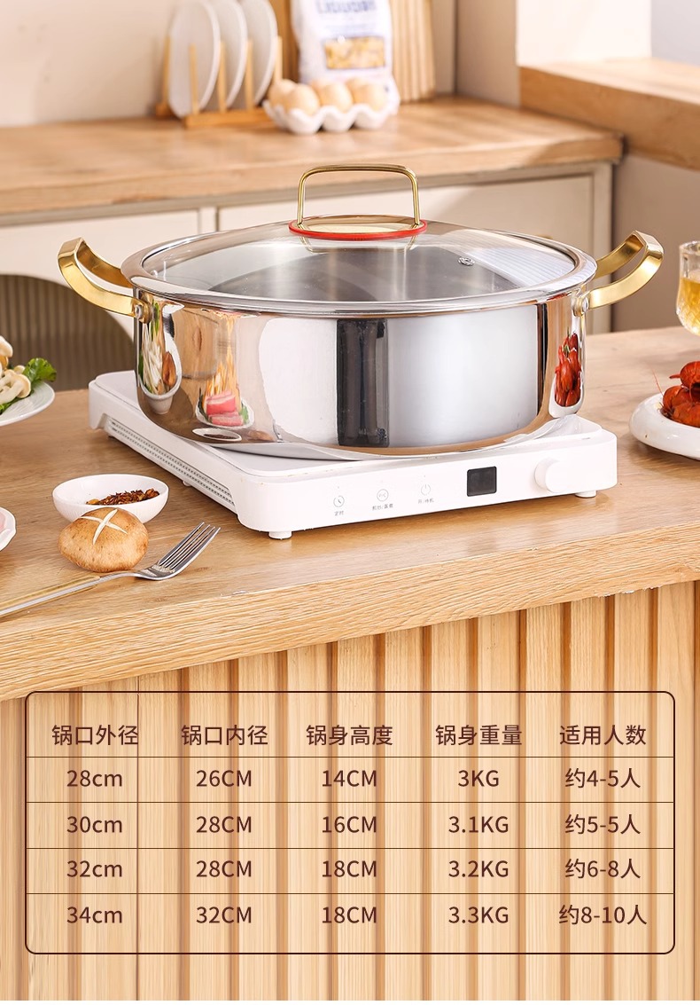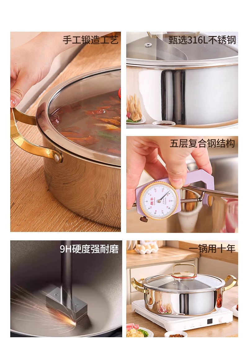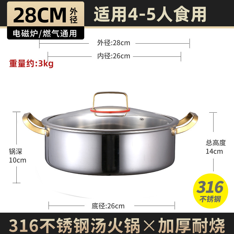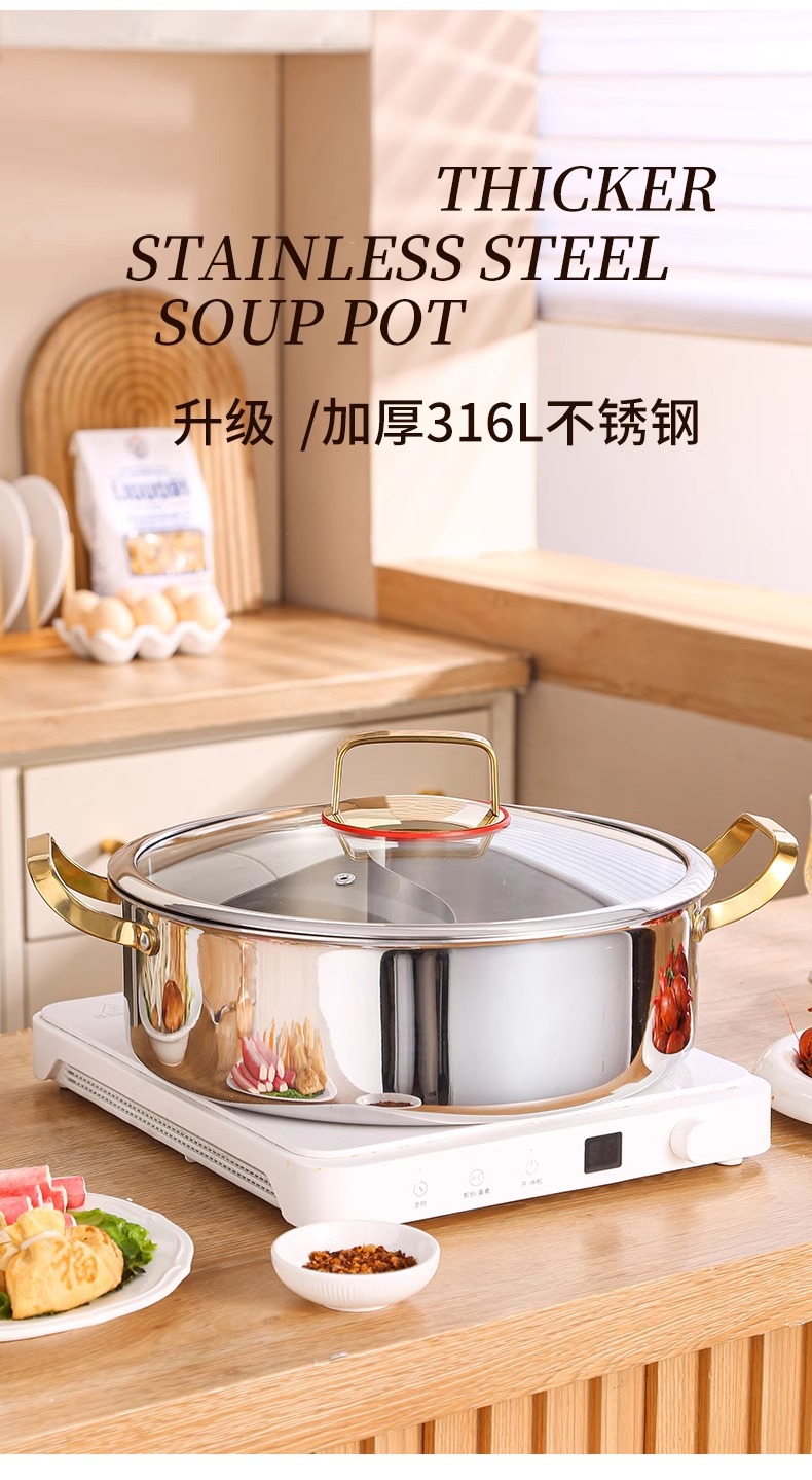 두꺼운 식품 등급 316 스테인레스 스틸 이중 귀 수프 냄비 대용량 다기능 냄비 가정용 한국식 수프 뜨거운 냄비