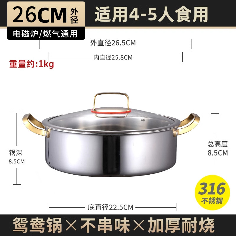 • [316L 의료용강] 26CM 원앙냄비 (특대형)