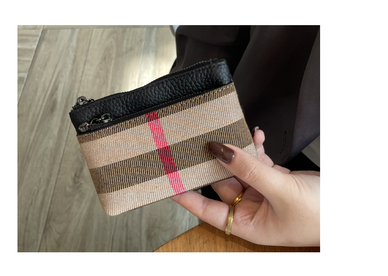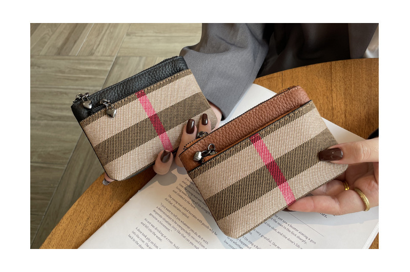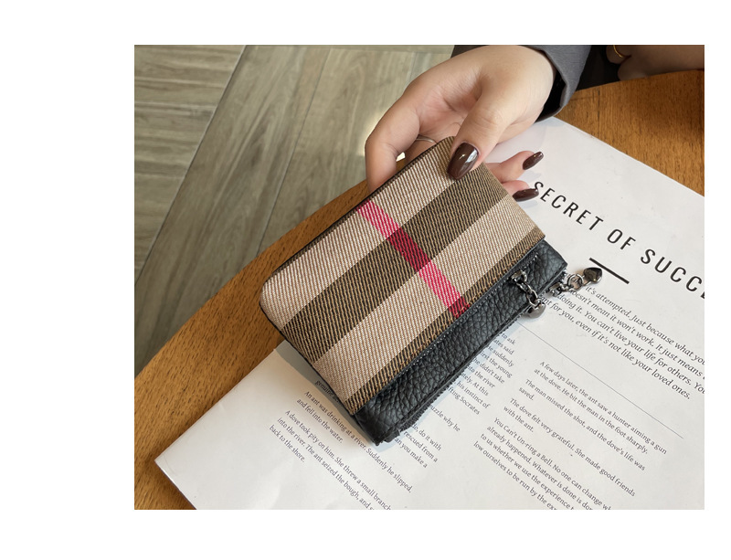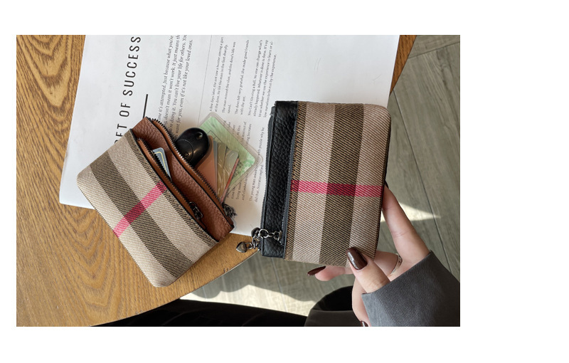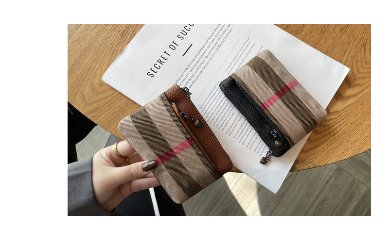패션 복고풍 격자 작은 지갑 2024 가을과 겨울 새로운 다기능 대용량 학생 일일 저장 동전 가방