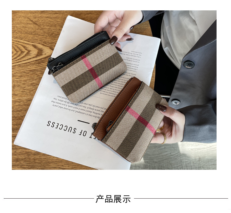 패션 복고풍 격자 작은 지갑 2024 가을과 겨울 새로운 다기능 대용량 학생 일일 저장 동전 가방스토어 가기
