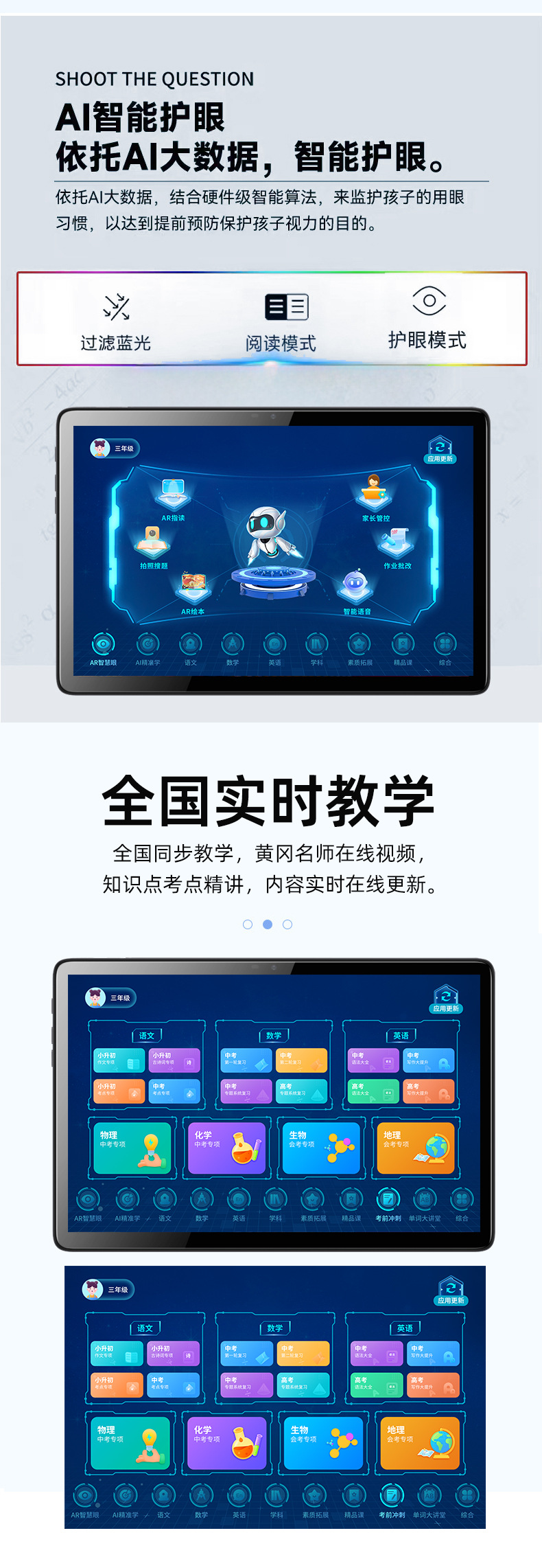 스마트 태블릿 컴퓨터, 유아부터 초등학생, 고등학생까지 동시 사용 가능, 손가락 클릭으로 수업, 눈 보호, 스마트 아이 학습기, 교육용 대화면스토어 가기