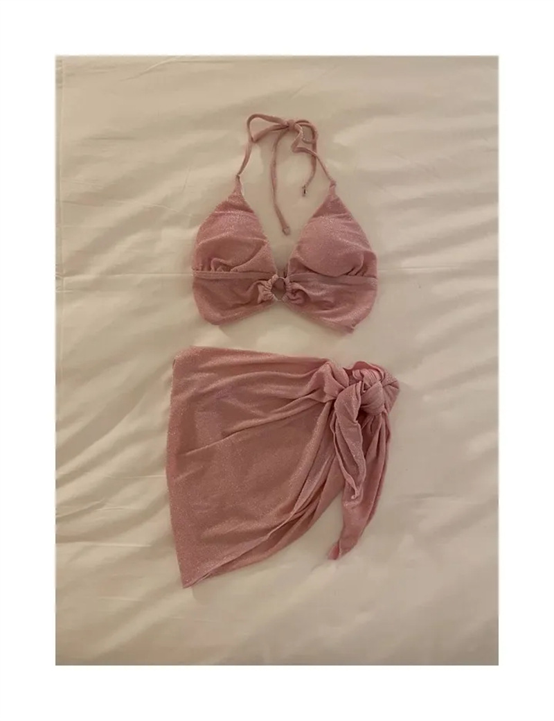 2025 홍콩 스타일 새로운 디자인 센스 섹시 비키니 솔리드 컬러 소녀 해변 휴가 3 피스 수영복 여성
