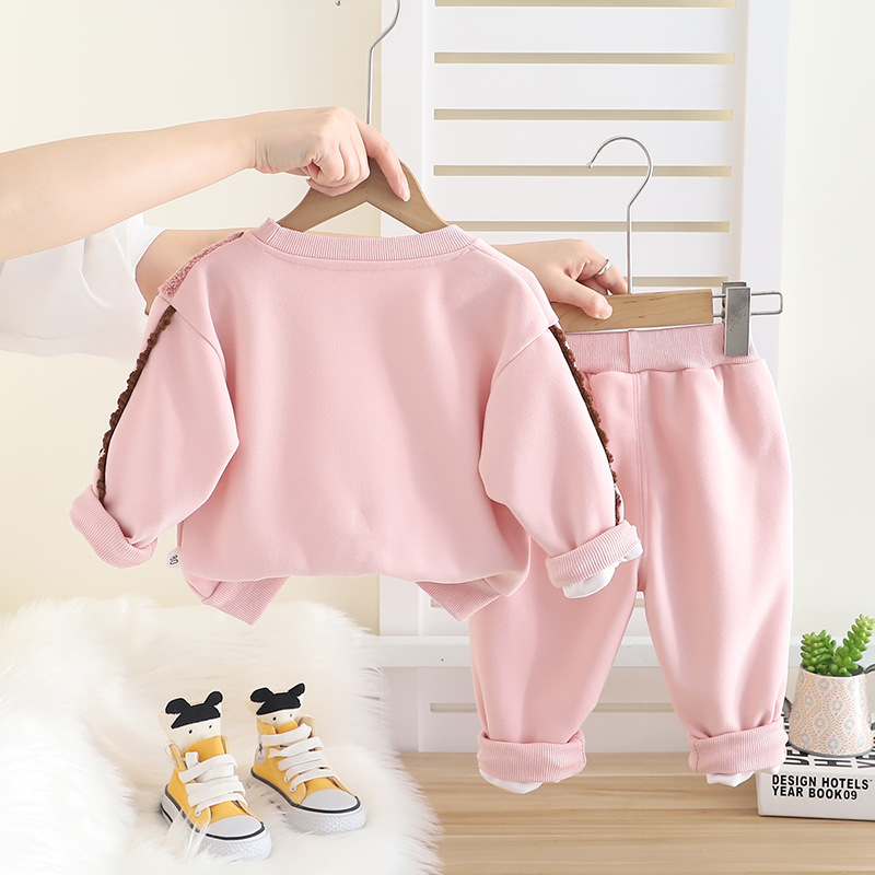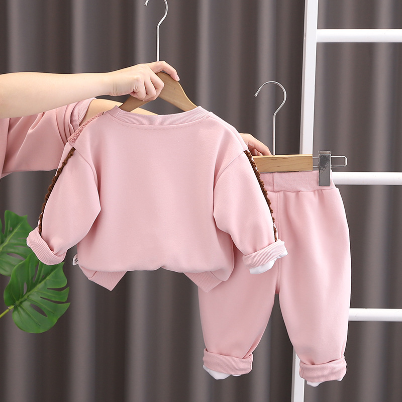 소녀 세트 봄과 가을 2025 새로운 스타일 소녀 아기 가을 토끼 귀 땀 어린이 어린이 착용 봄 착용