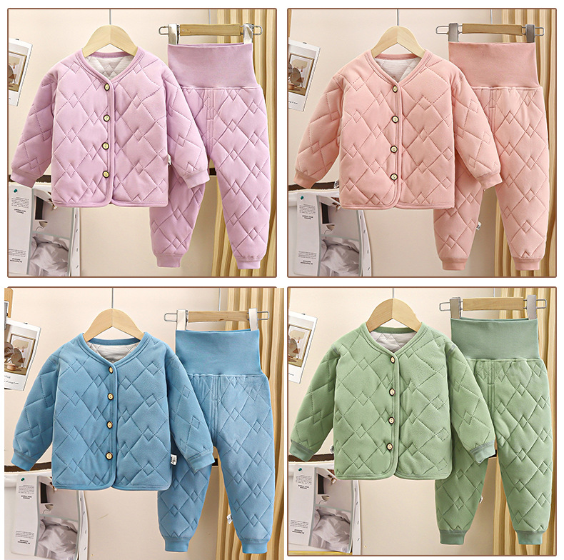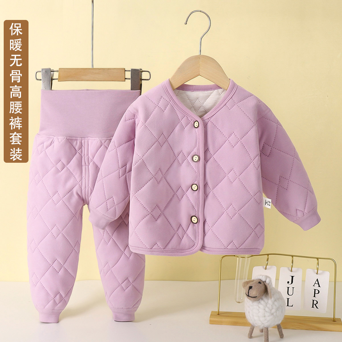 아기의 뼈없는 열 속옷 소년과 소녀 가을과 겨울 홈 옷 어린이 두꺼운 잠옷 아기의 면 배꼽 보호 세트