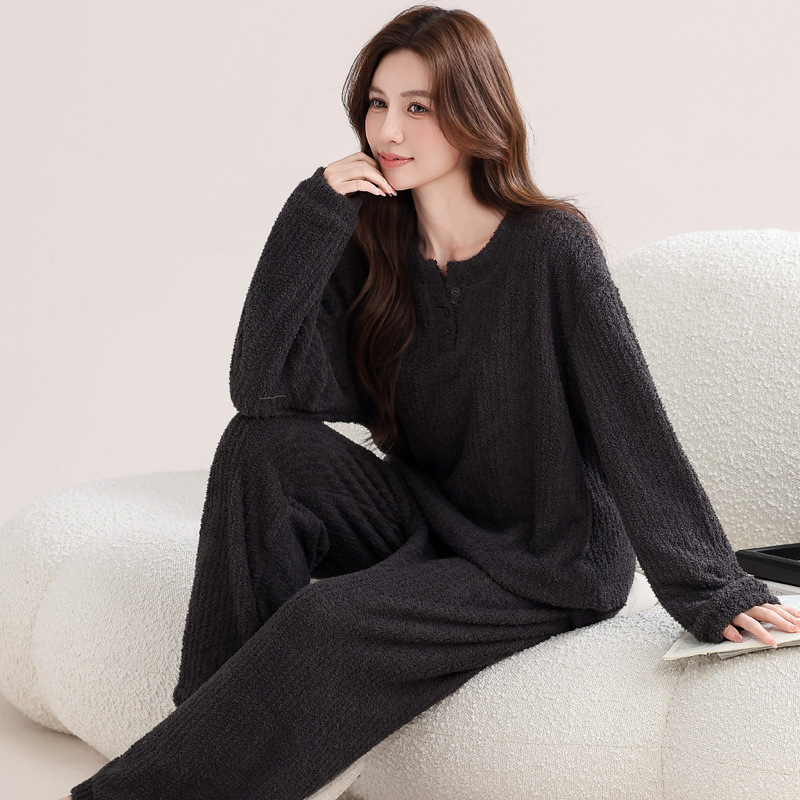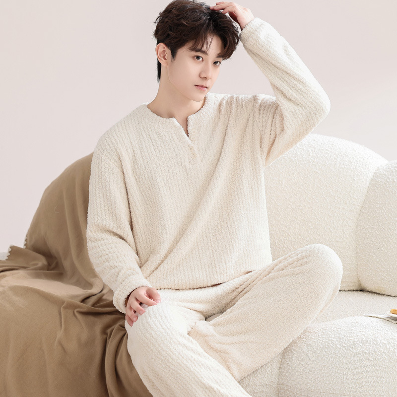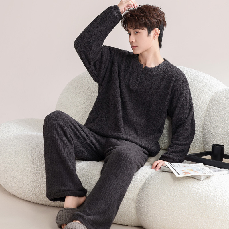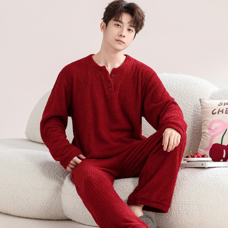 반쪽 벨벳 커플 잠옷 여성의 가을과 겨울 따뜻한 남자 겨울 코랄 벨벳 홈 의류 기모 세트