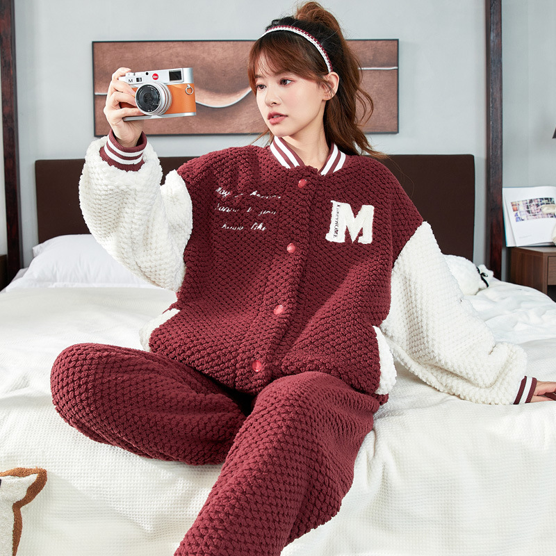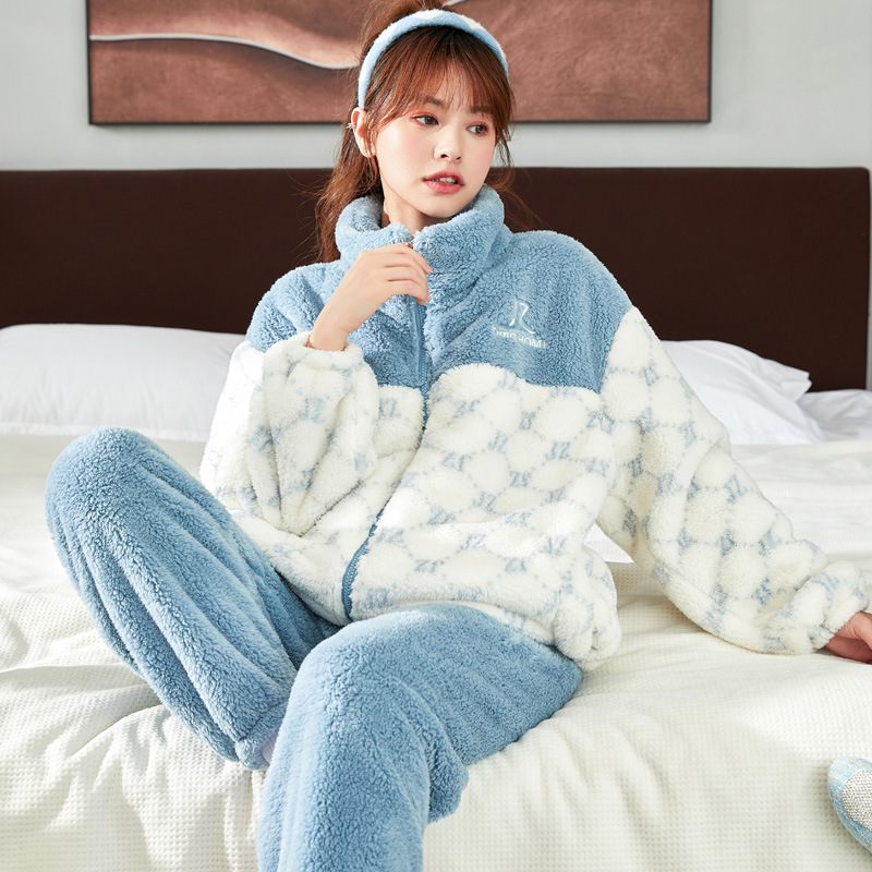 반쪽 벨벳 커플 잠옷 여성의 가을과 겨울 따뜻한 남자 겨울 코랄 벨벳 홈 의류 기모 세트스토어 가기