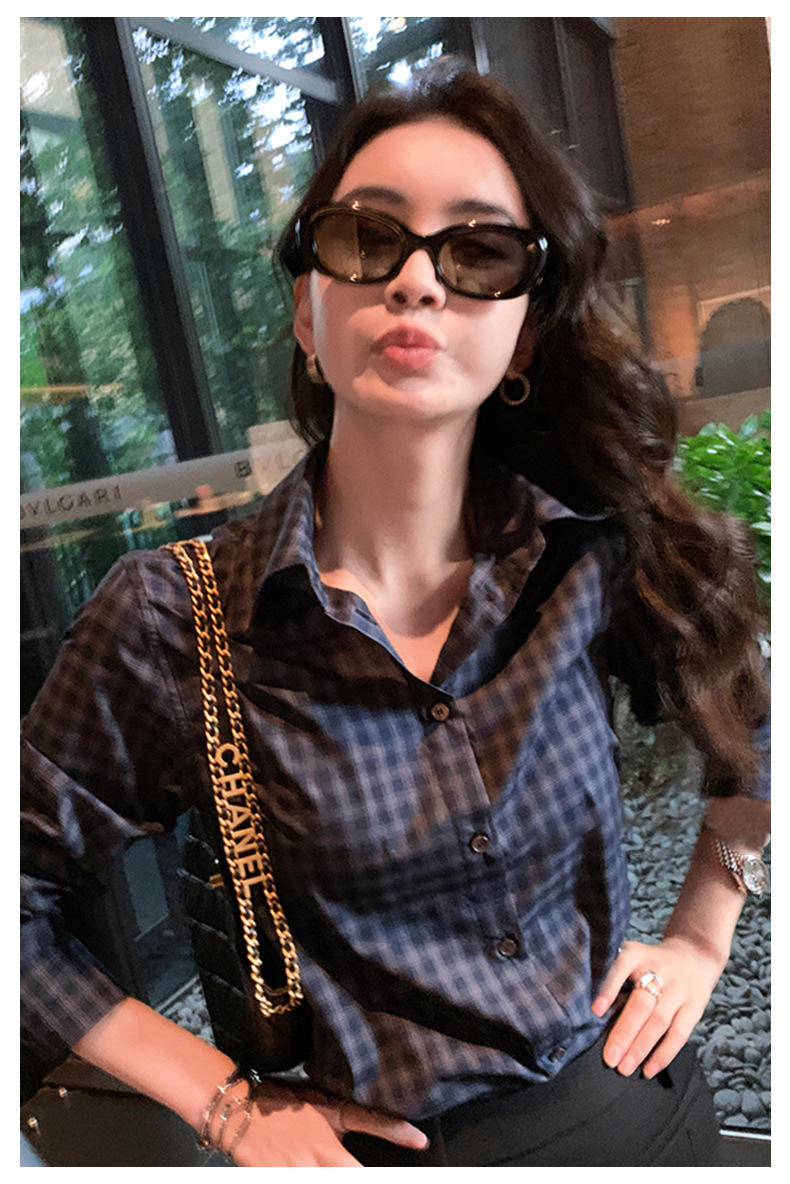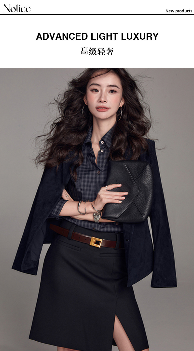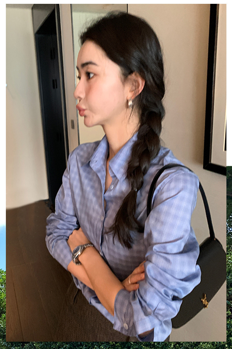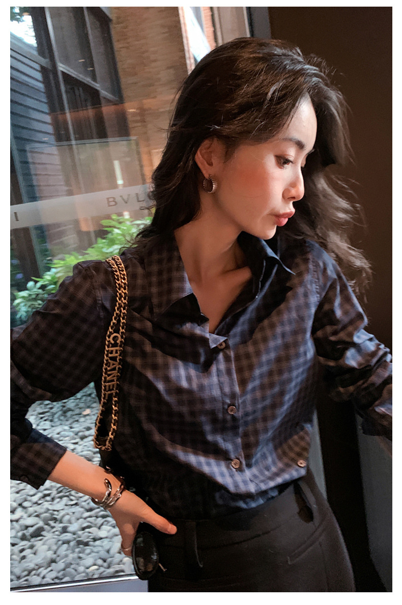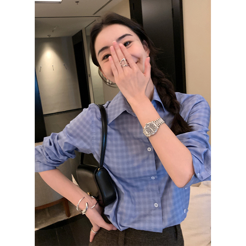 여성을 위한 고급 라펠 긴팔 체크 무늬 셔츠, 초봄 신작 2025 통근 다용도 기질 슬리밍 캐주얼 탑