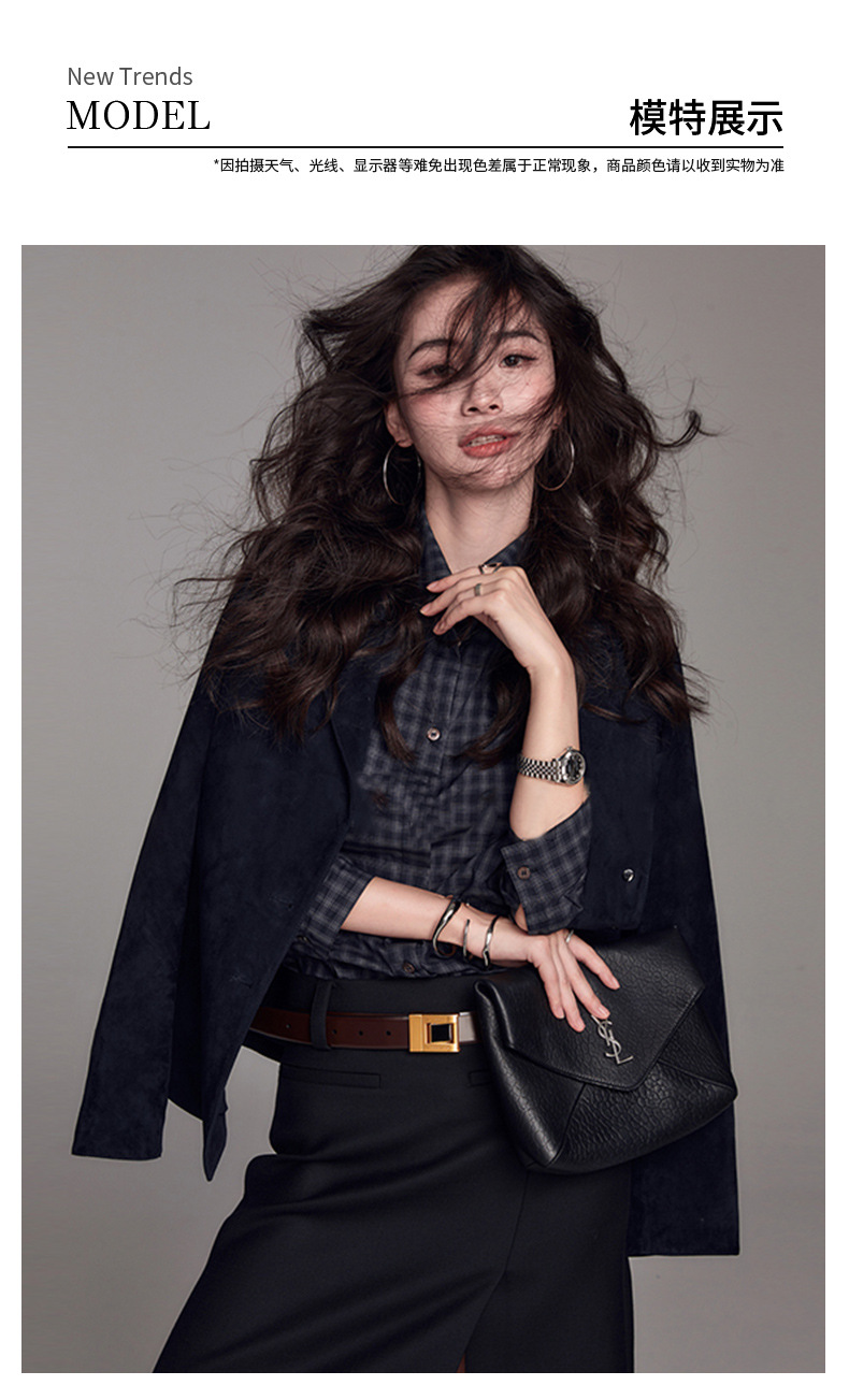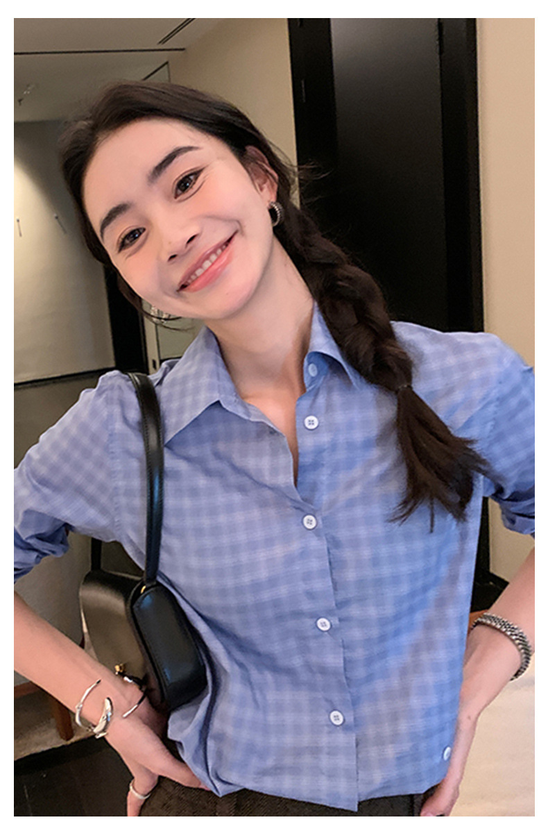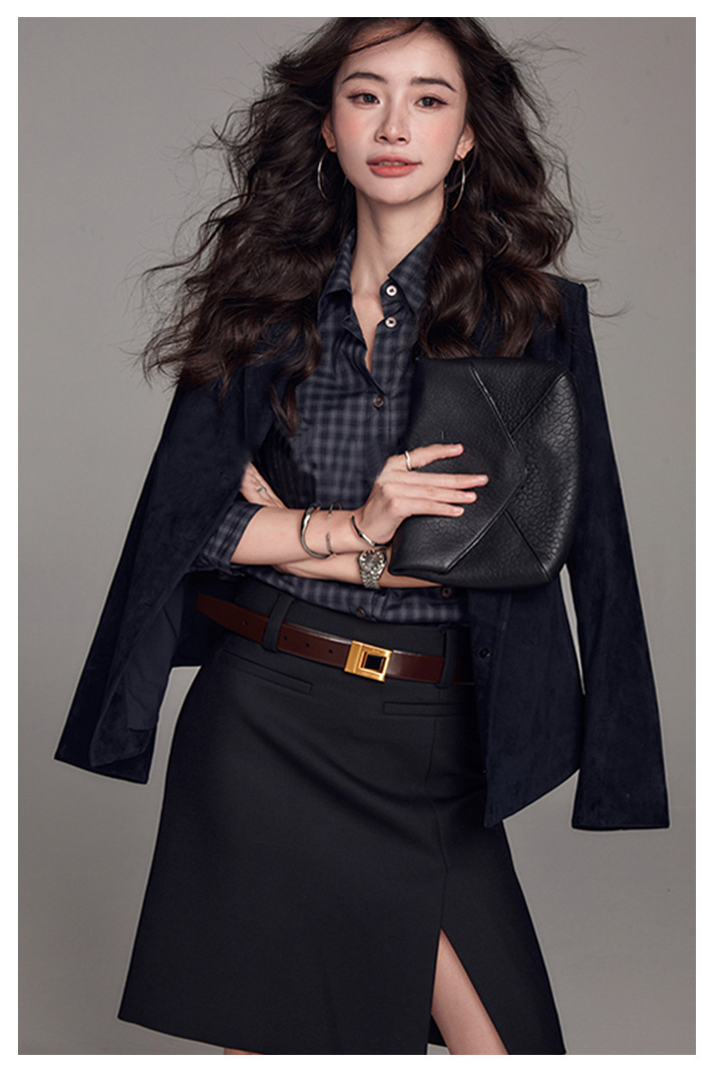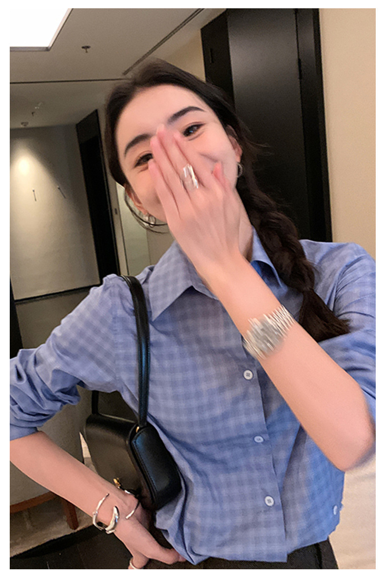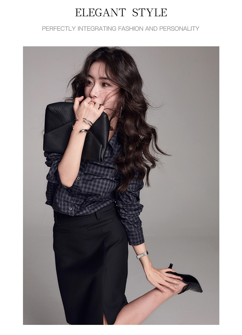 여성을 위한 고급 라펠 긴팔 체크 무늬 셔츠, 초봄 신작 2025 통근 다용도 기질 슬리밍 캐주얼 탑