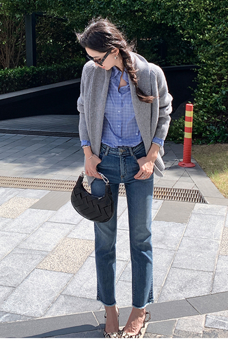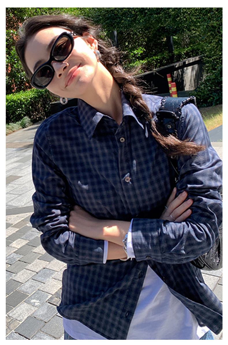 여성을 위한 고급 라펠 긴팔 체크 무늬 셔츠, 초봄 신작 2025 통근 다용도 기질 슬리밍 캐주얼 탑스토어 가기