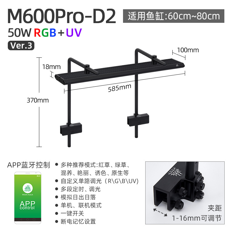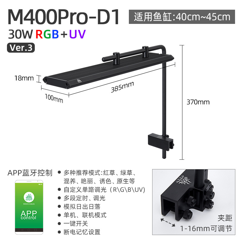Wellcome 수생 및 육상 조경 수생 식물 램프 수조 램프 식물 성장 램프 모바일 APP 블루투스 제어 수족관 램프