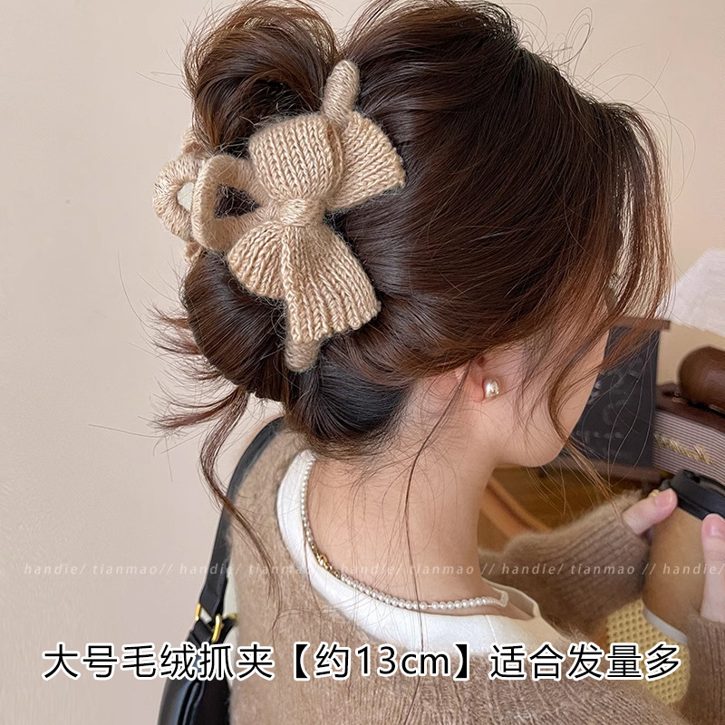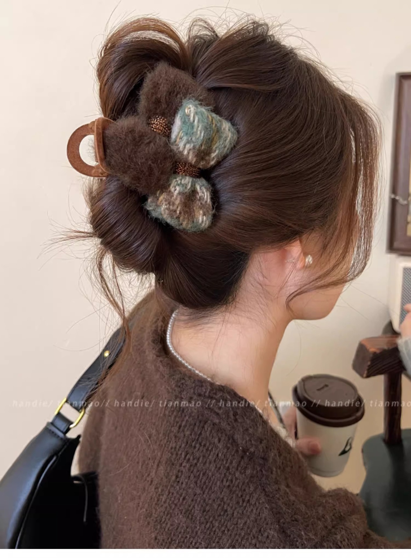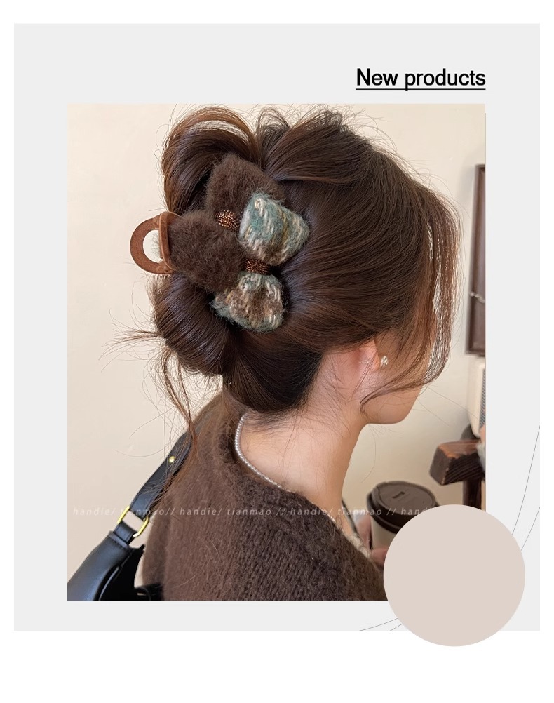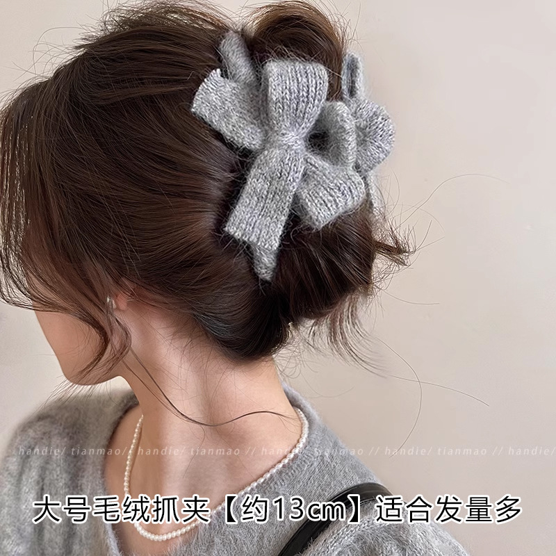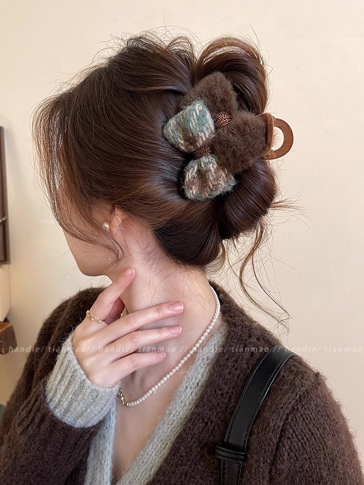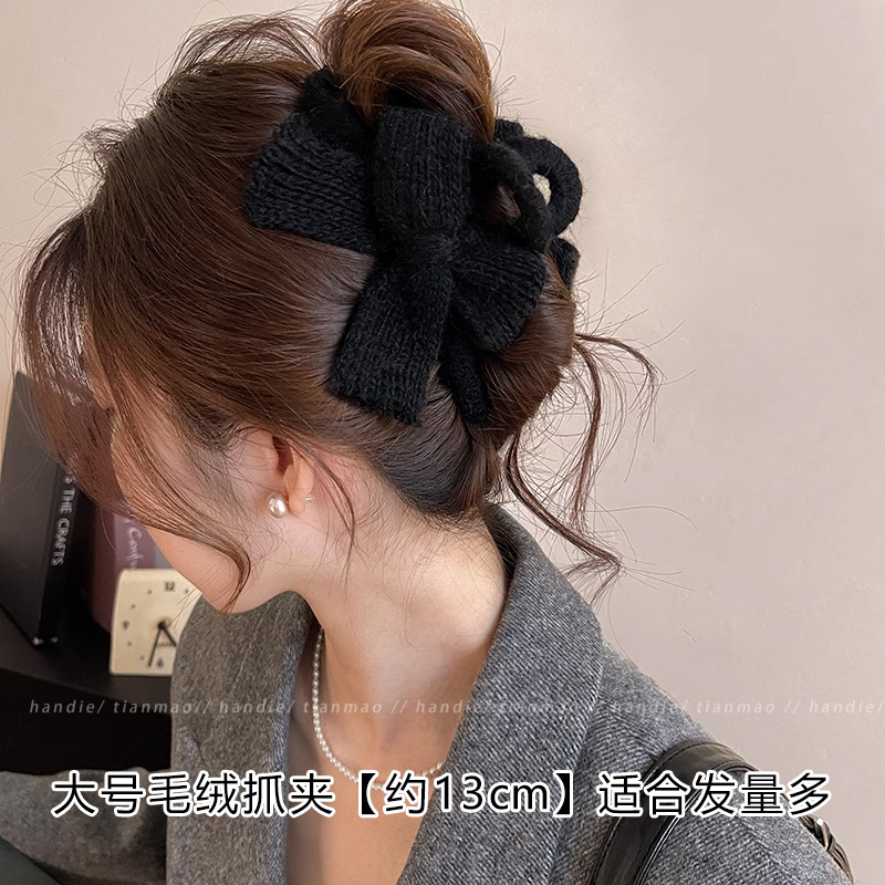 가을 겨울용 털 장식 리본 머리핀 여성용 뒷머리 샤크클립 2025 신상 고급스러운 스타일 헤어 액세서리스토어 가기