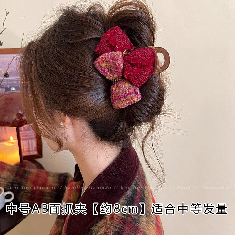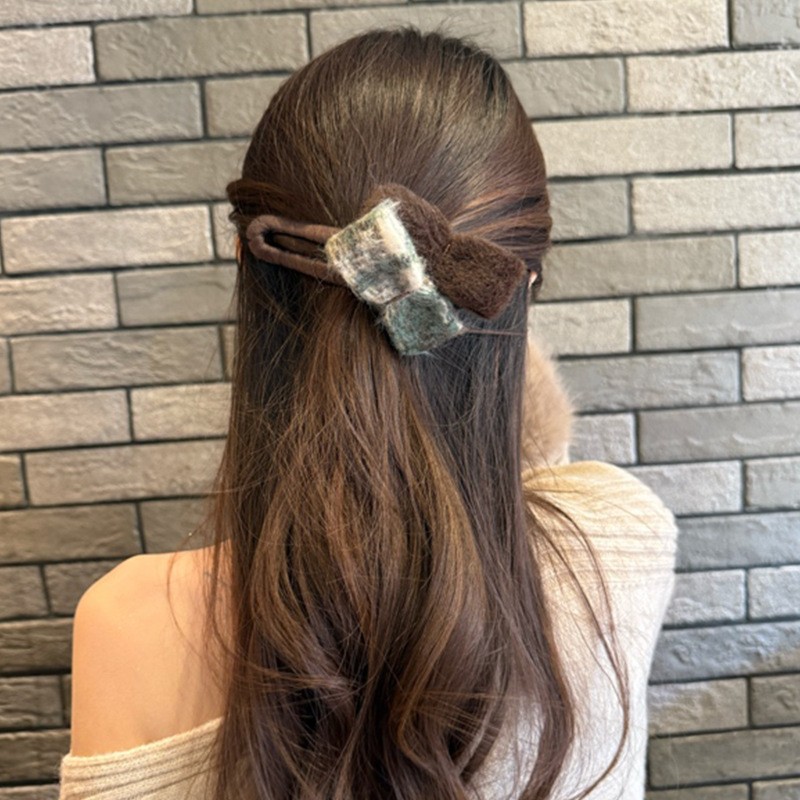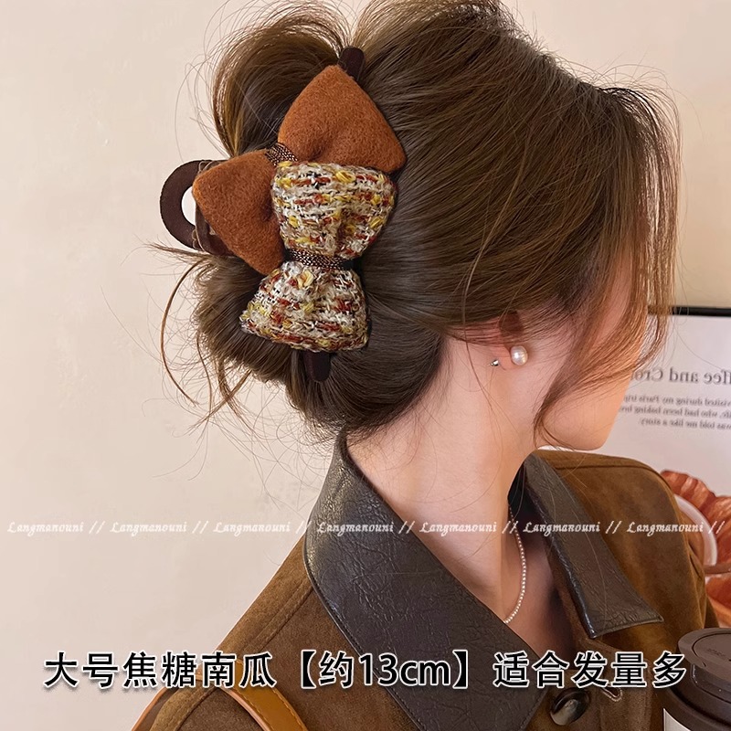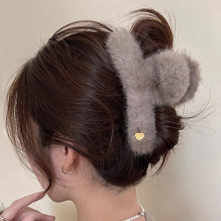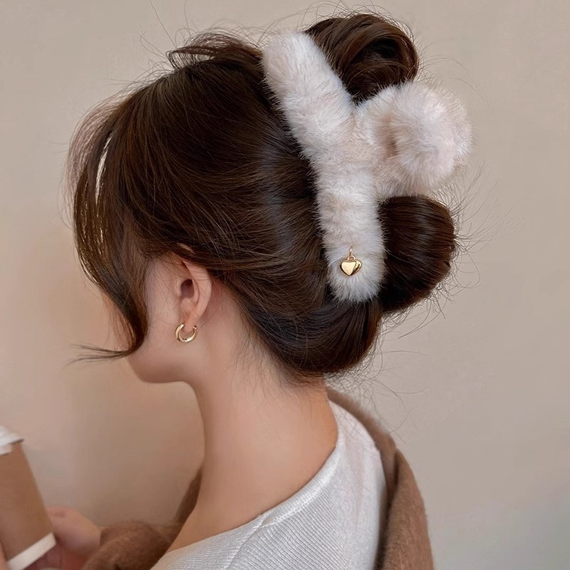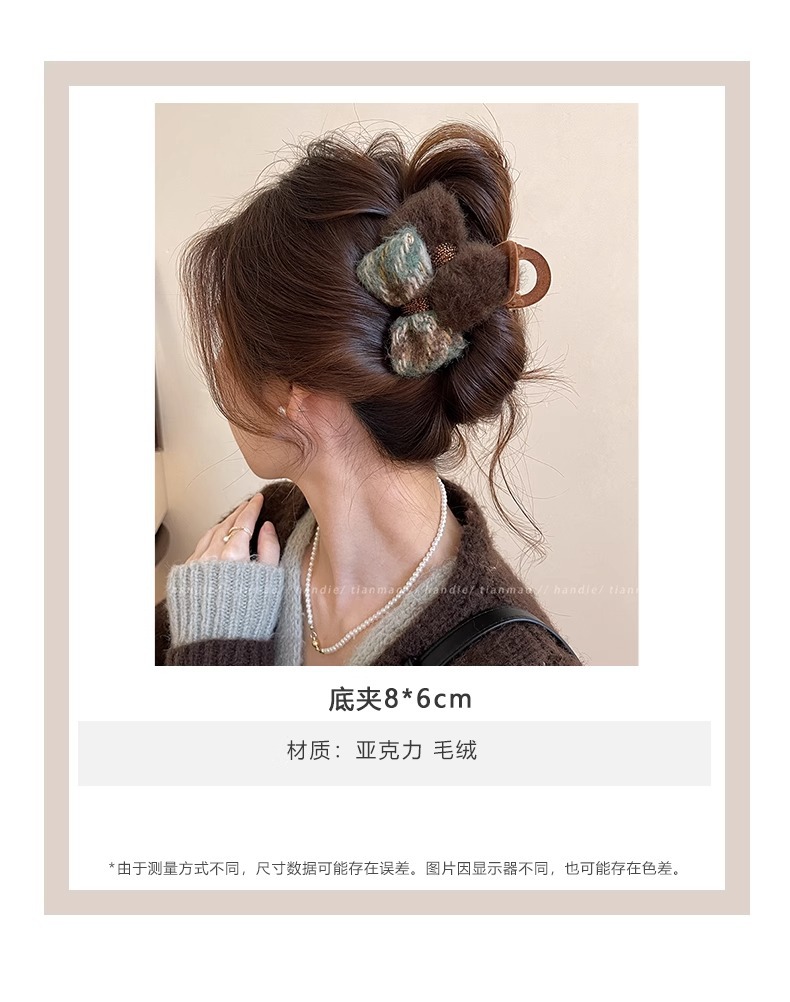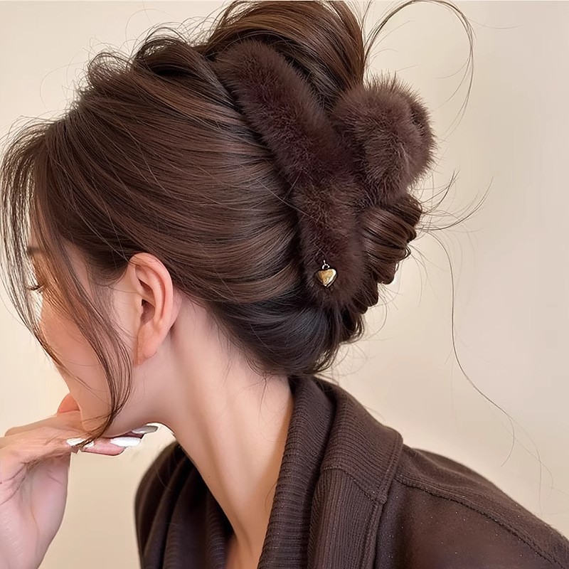 가을 겨울용 털 장식 리본 머리핀 여성용 뒷머리 샤크클립 2025 신상 고급스러운 스타일 헤어 액세서리스토어 가기