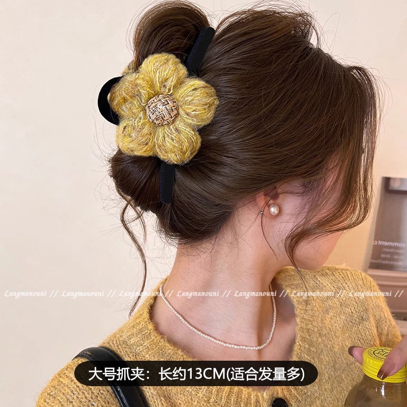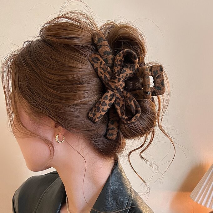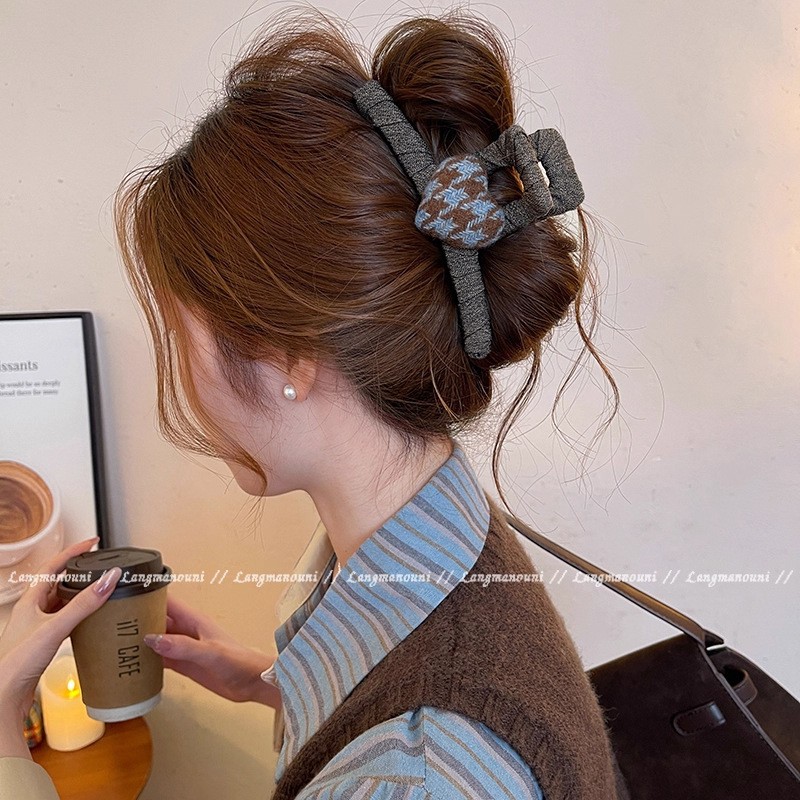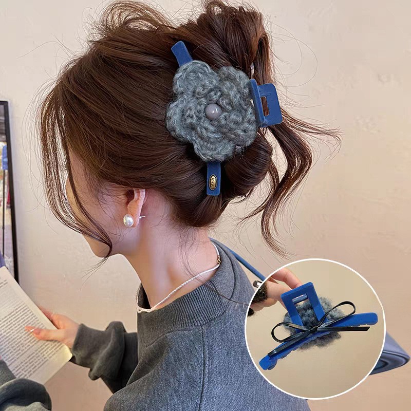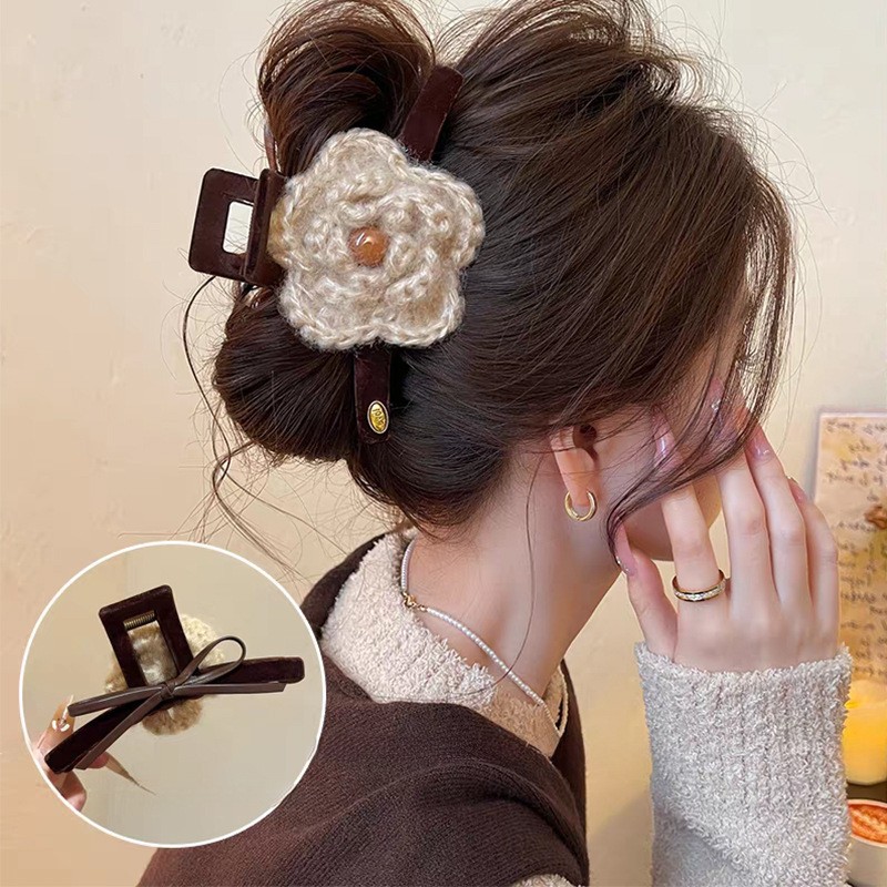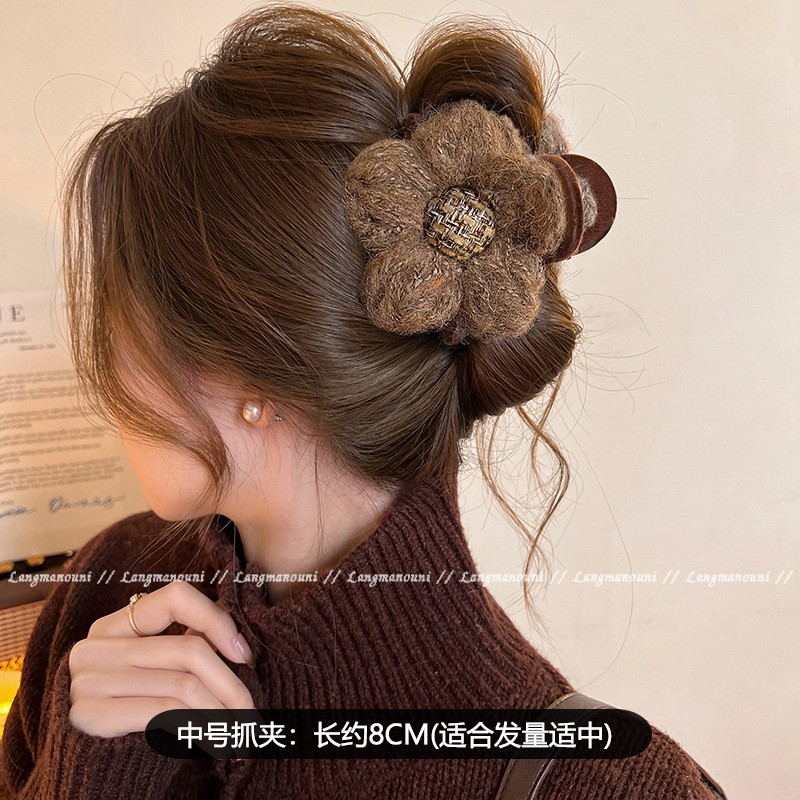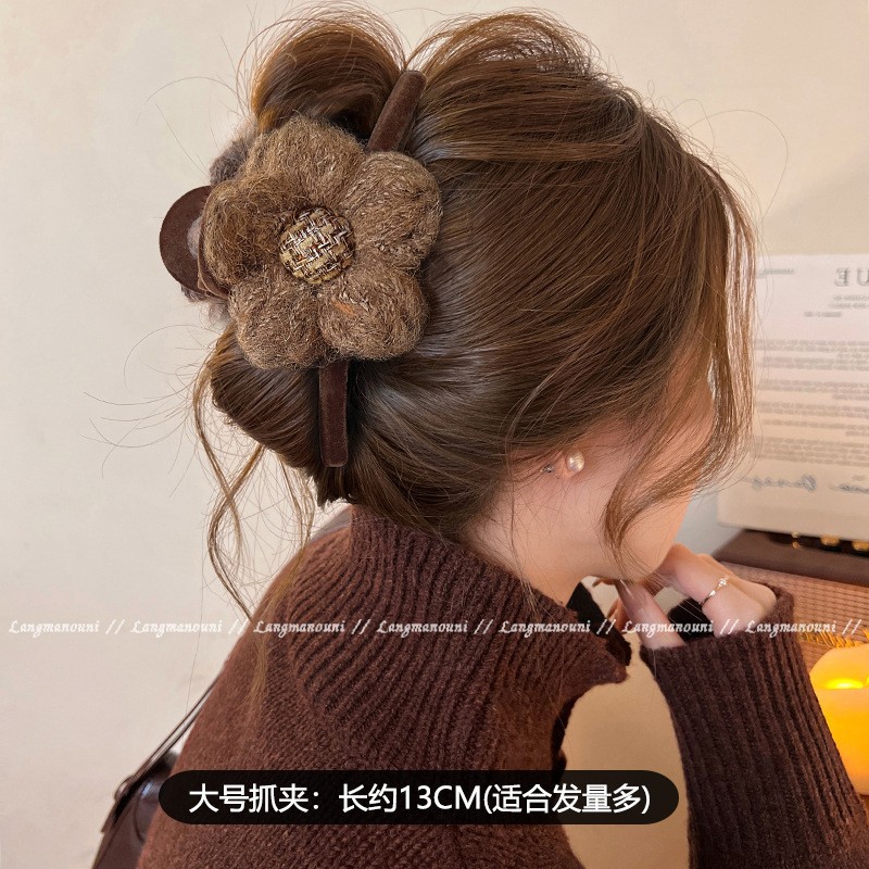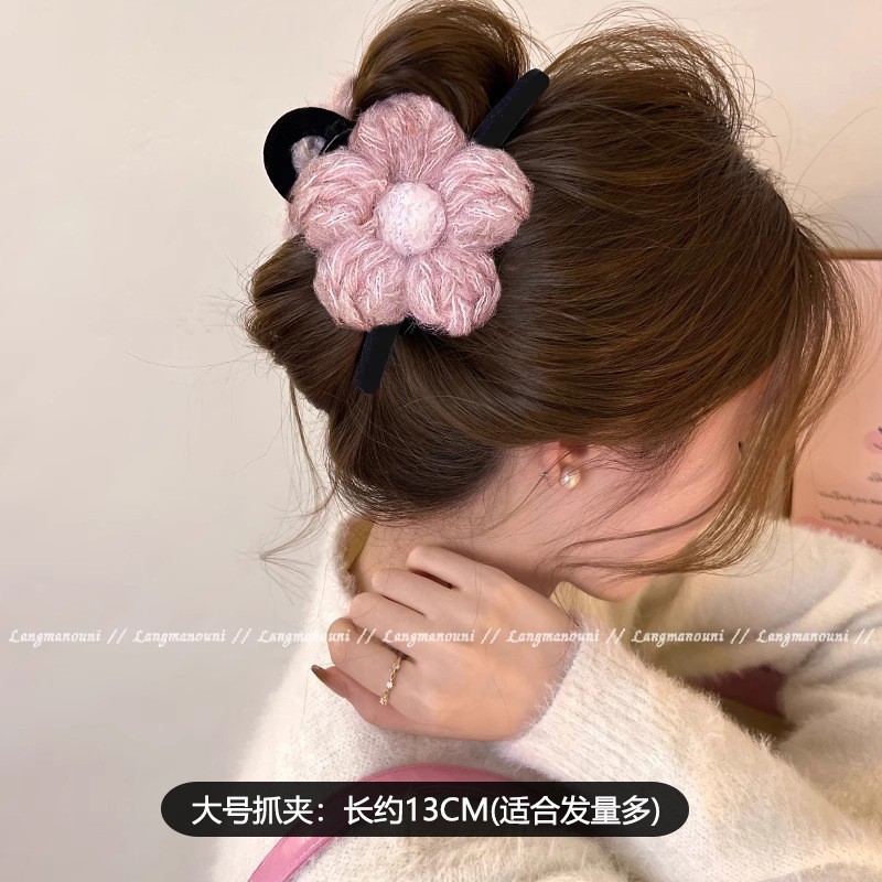 가을 겨울용 털 장식 리본 머리핀 여성용 뒷머리 샤크클립 2025 신상 고급스러운 스타일 헤어 액세서리스토어 가기