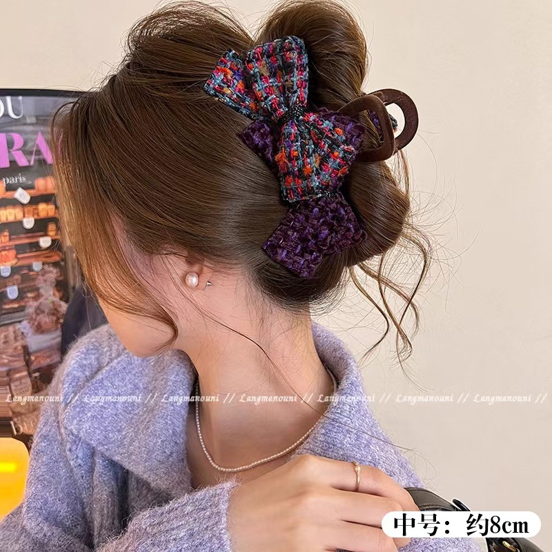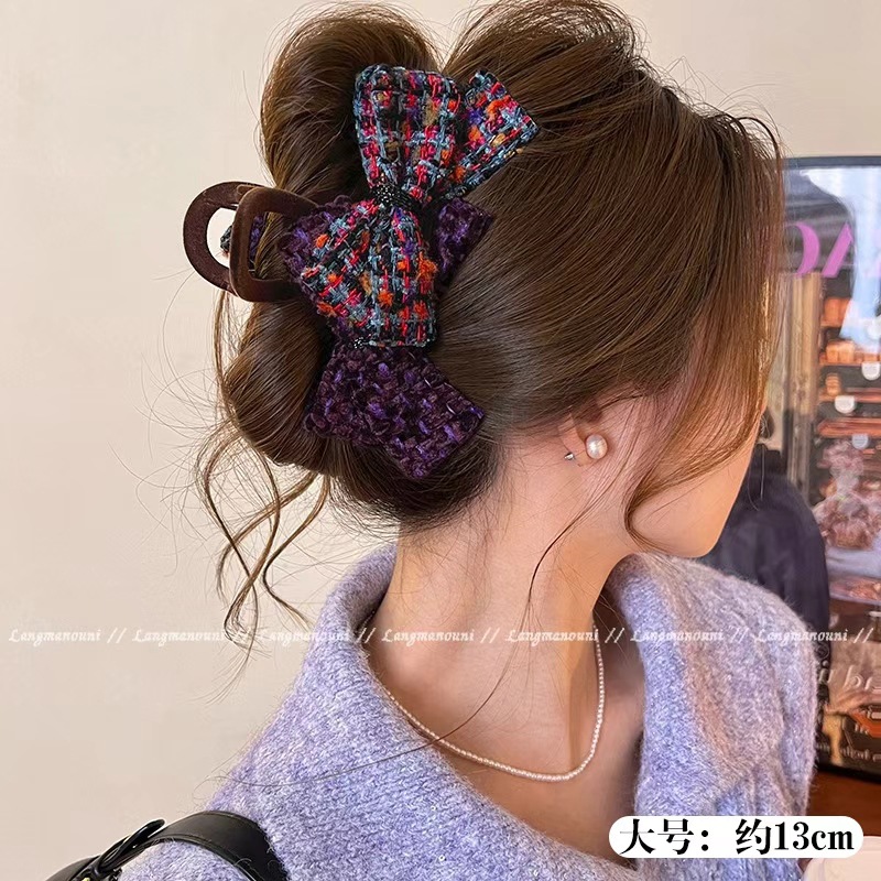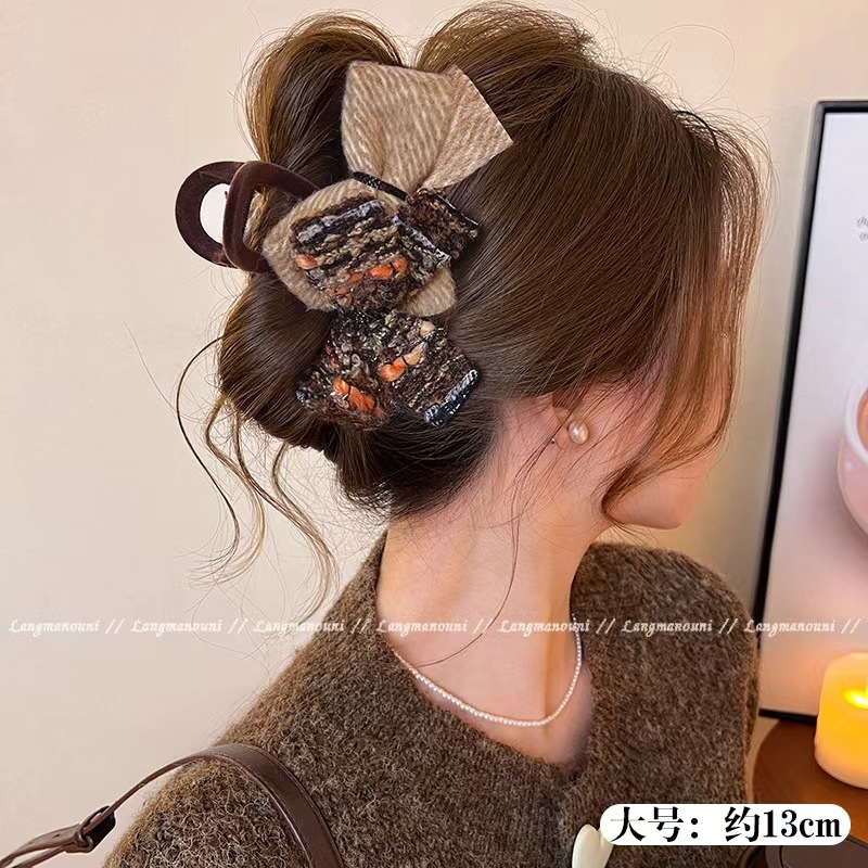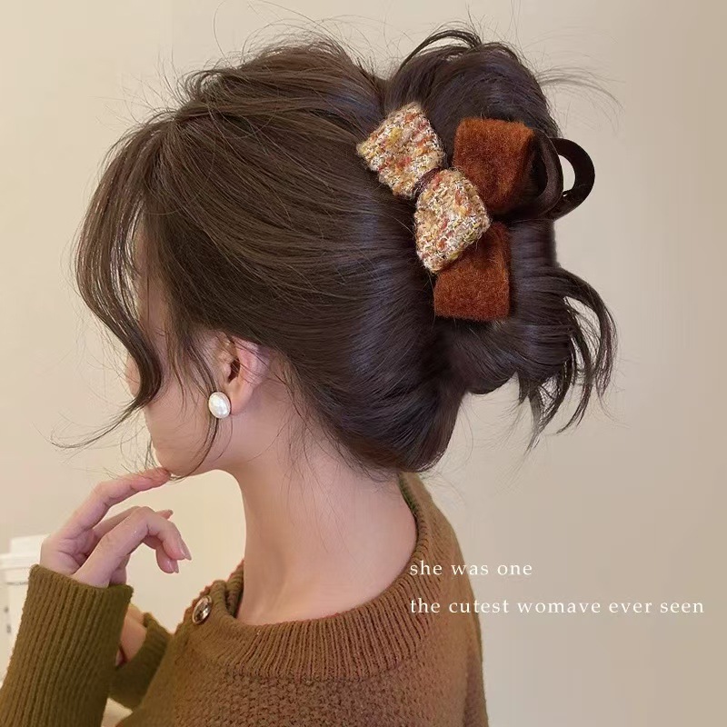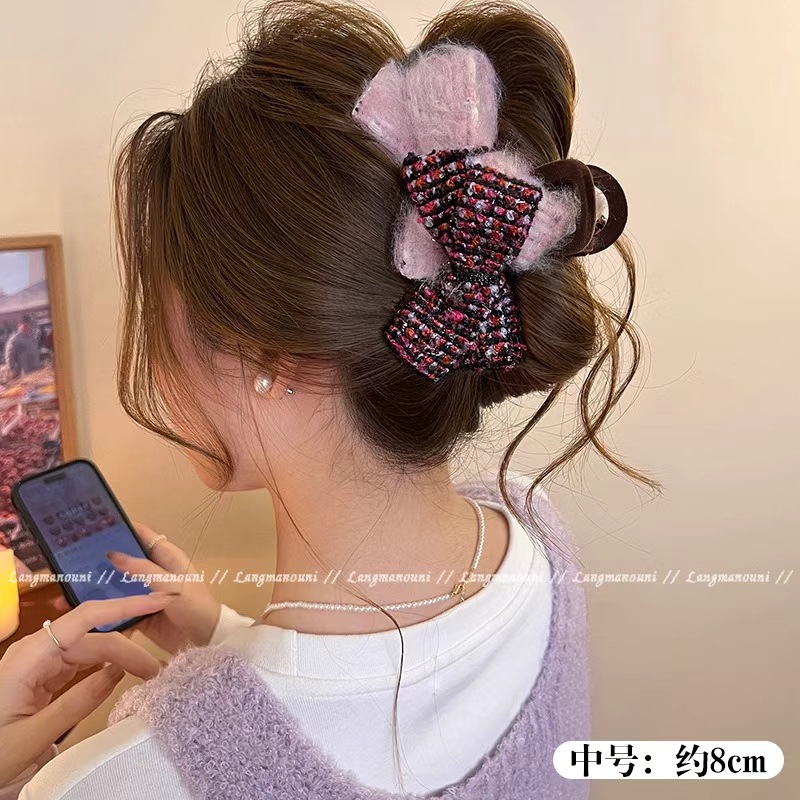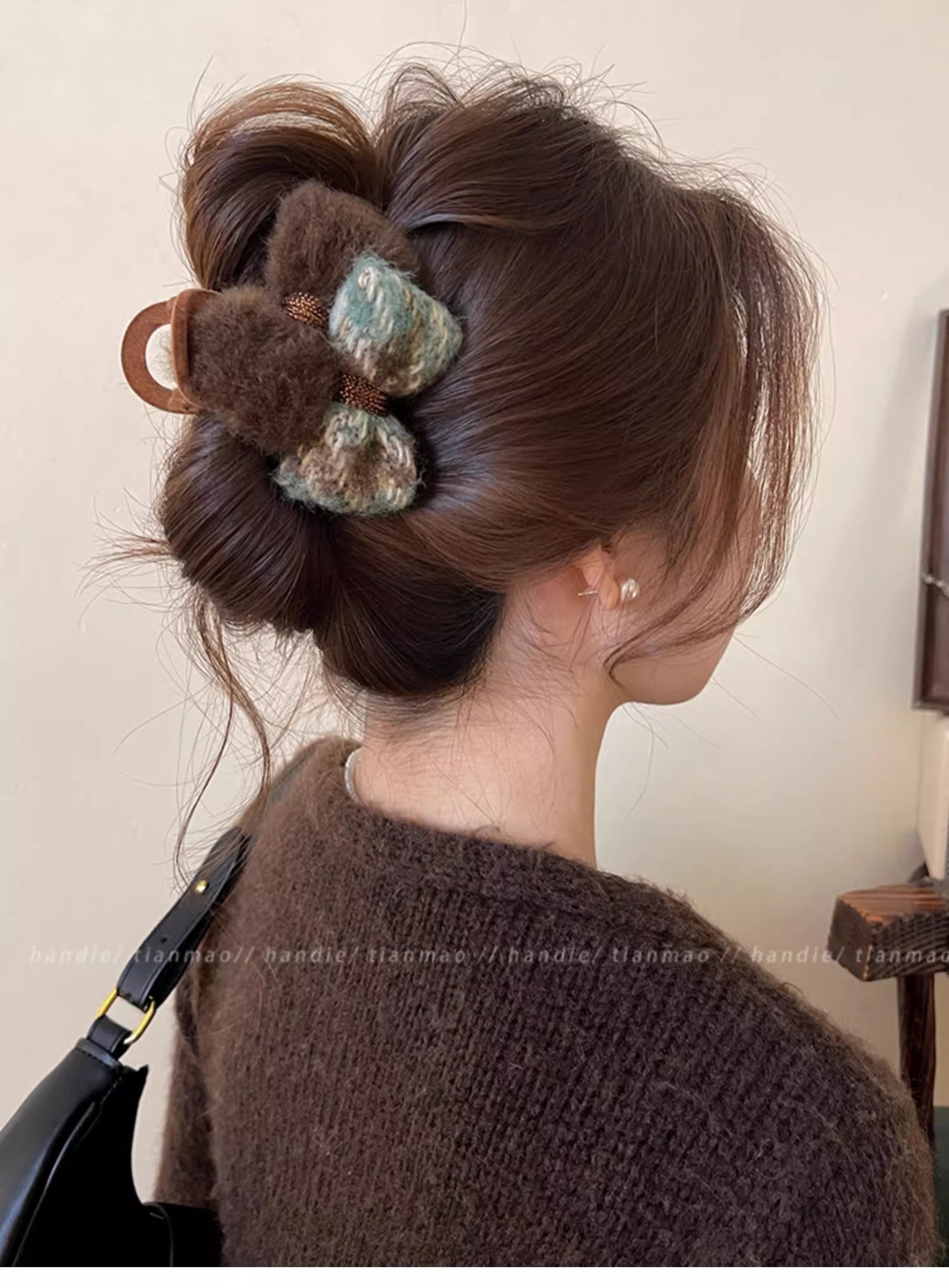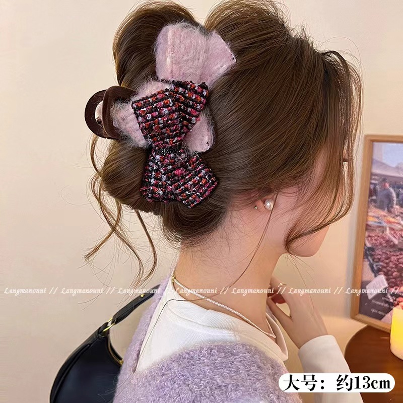가을 겨울용 털 장식 리본 머리핀 여성용 뒷머리 샤크클립 2025 신상 고급스러운 스타일 헤어 액세서리
