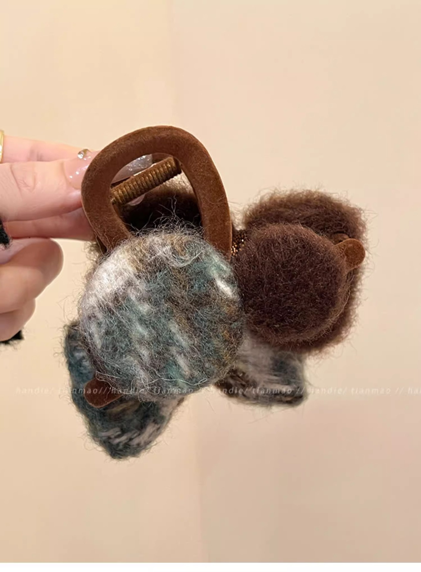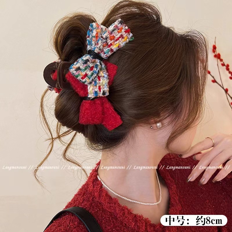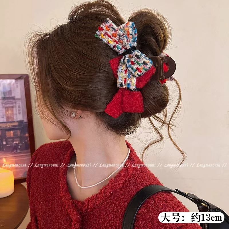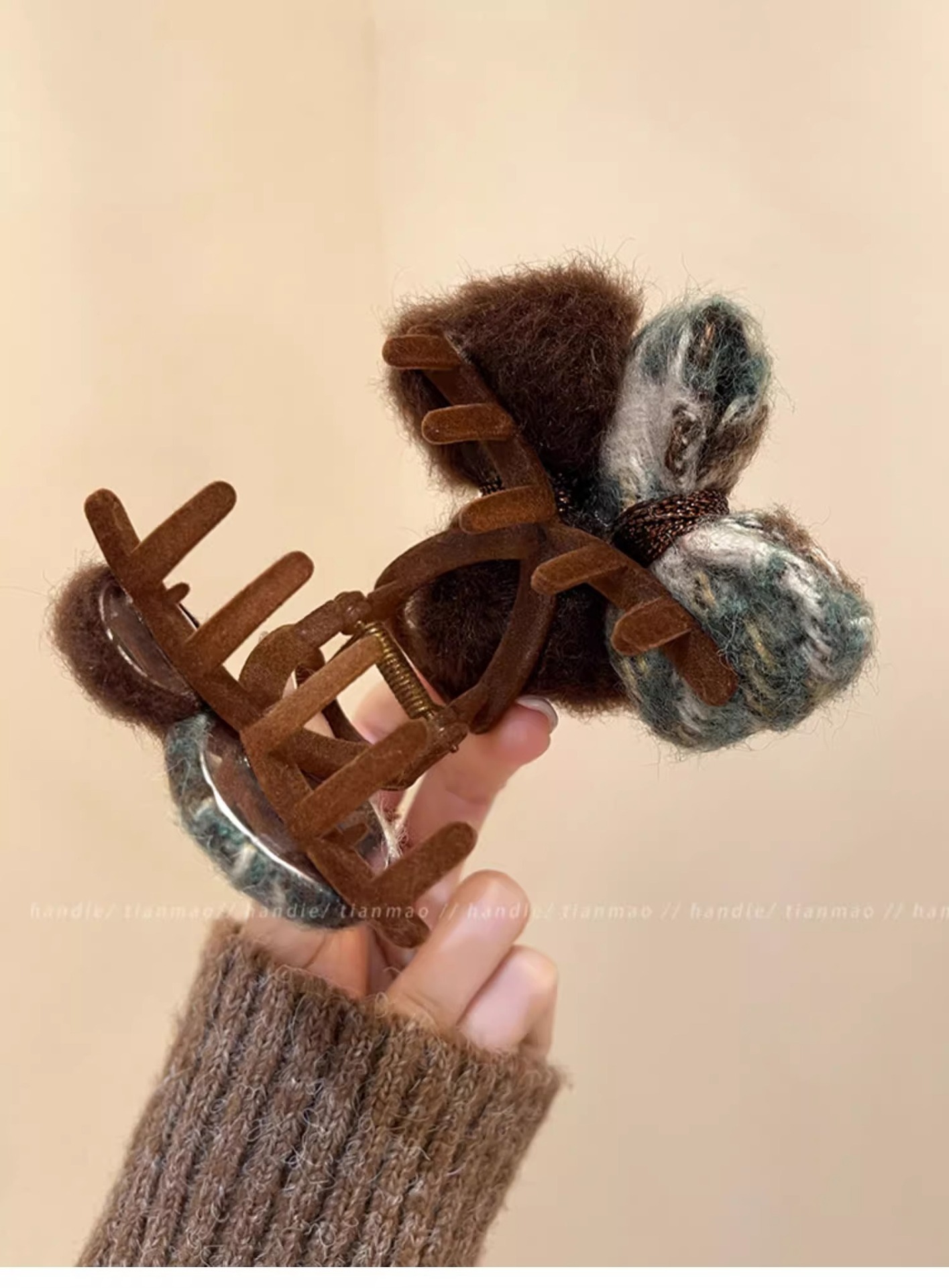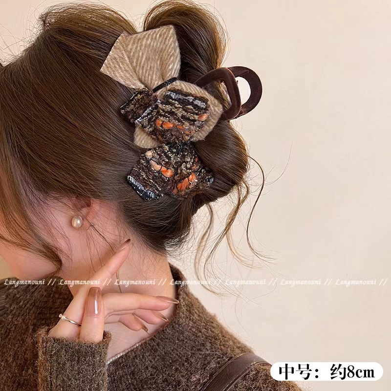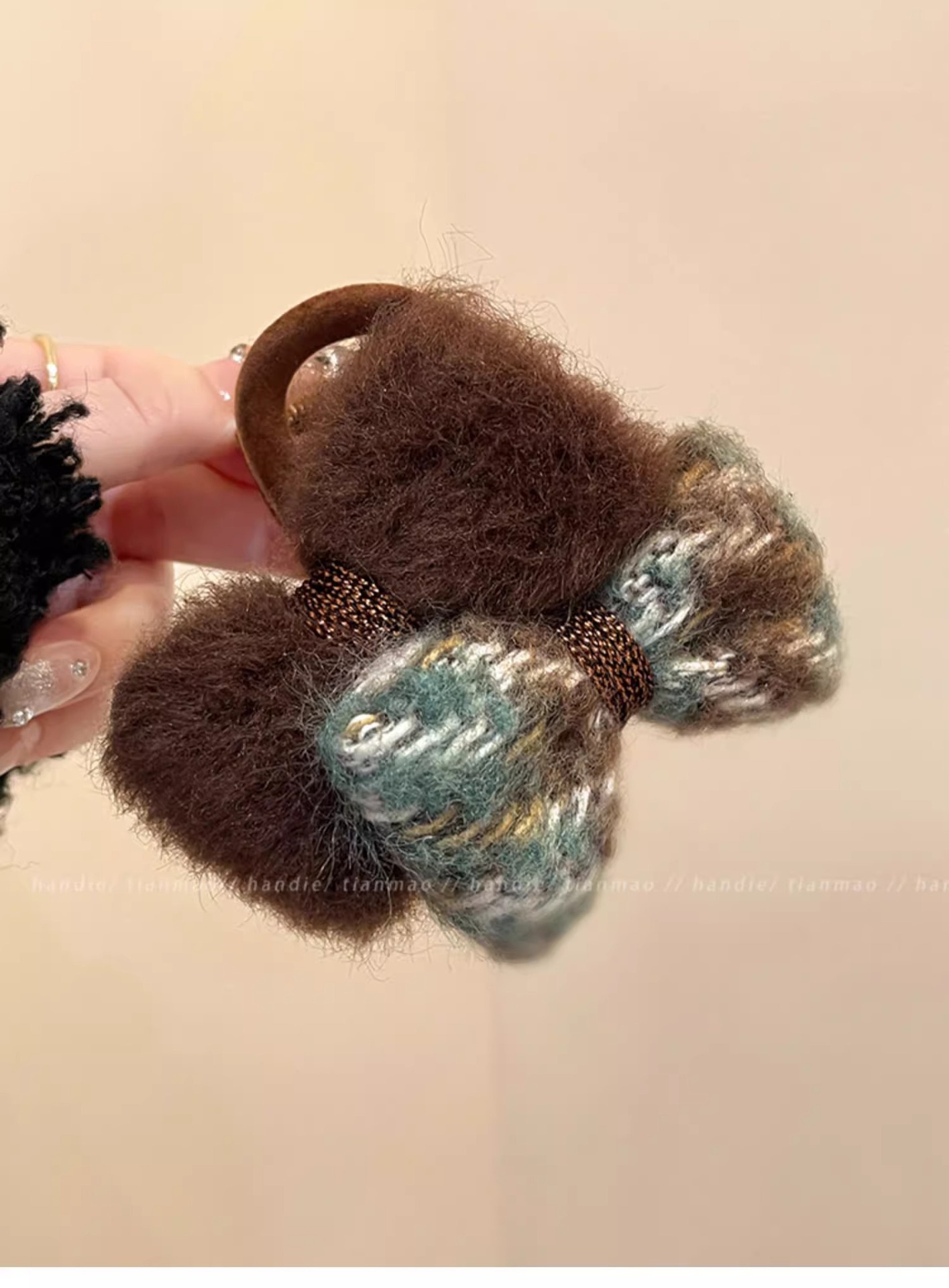 가을 겨울용 털 장식 리본 머리핀 여성용 뒷머리 샤크클립 2025 신상 고급스러운 스타일 헤어 액세서리