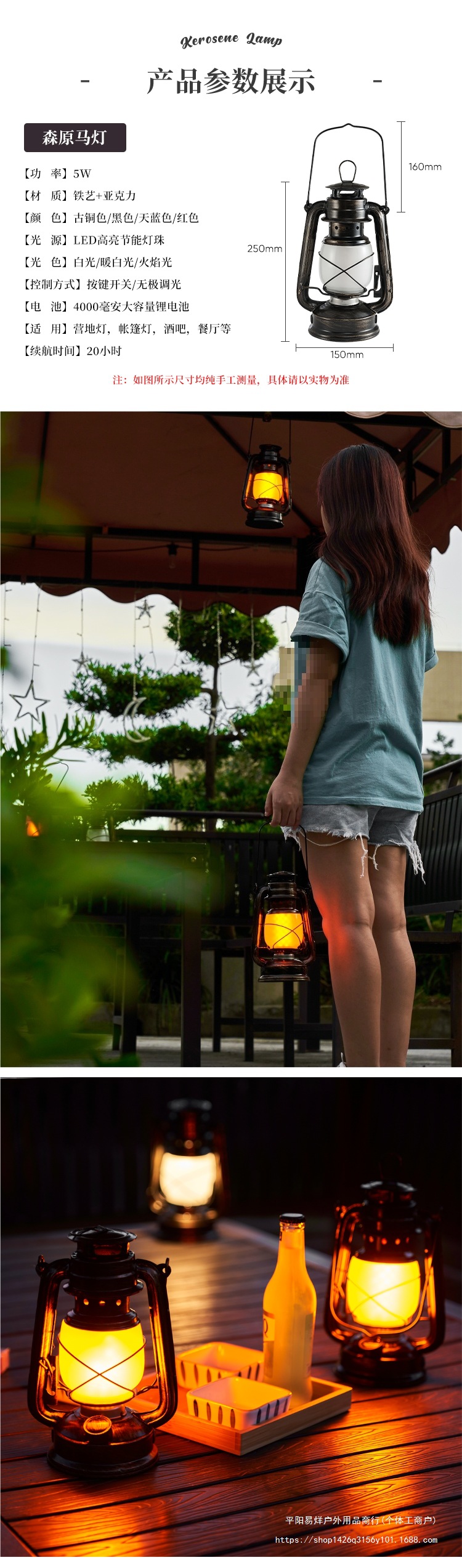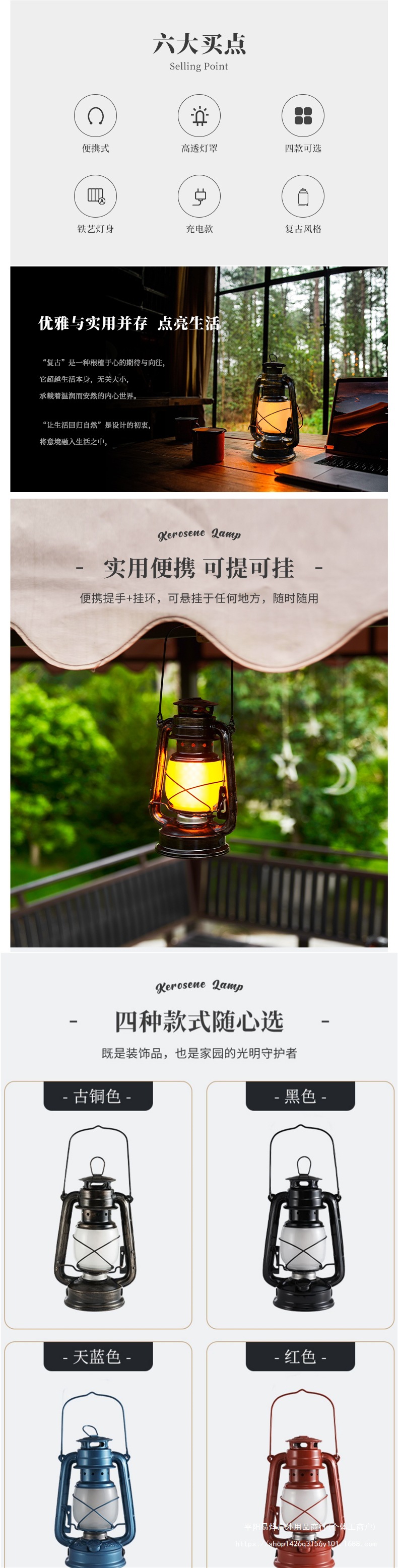 야외 충전 복고풍 랜턴 캠프 캠핑 분위기 등유 휴대용 마구간 텐트 램프 장식 불꽃 야외 램프스토어 가기