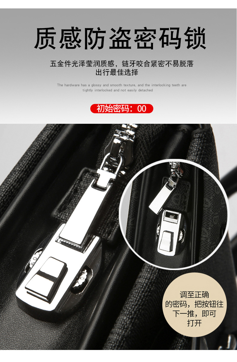 새로운 남성 가방 비밀번호 잠금 도난 방지 핸드백 어깨 크로스 바디 간단한 대용량 비즈니스 서류 가방 남성 컴퓨터 가방