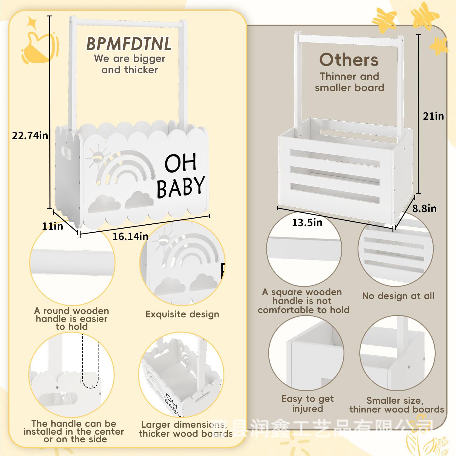 국경 간 나무 저장 상자 아기 용품 저장 바구니 가정용 옷 장난감 보관 바구니 신생아 선물 나무 상자스토어 가기