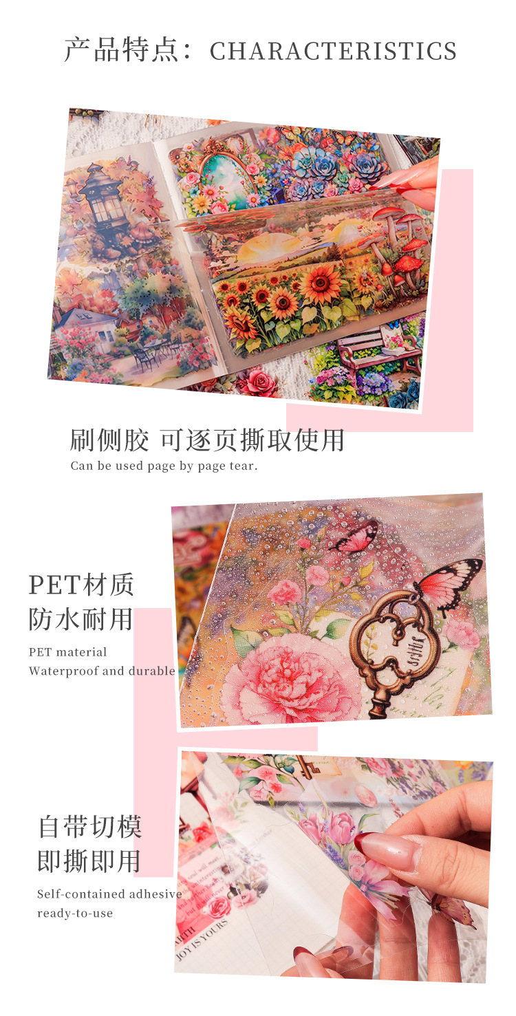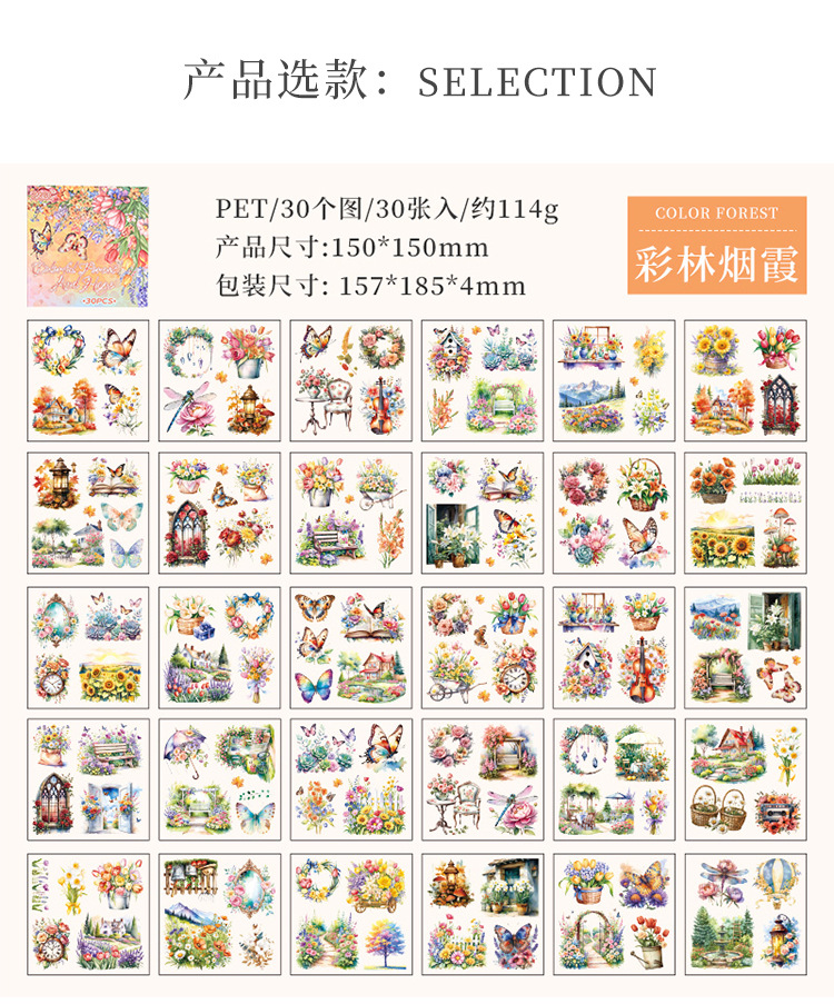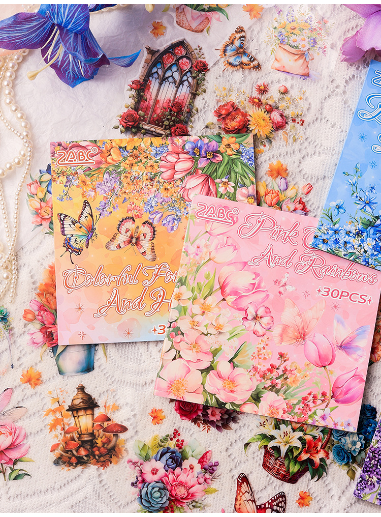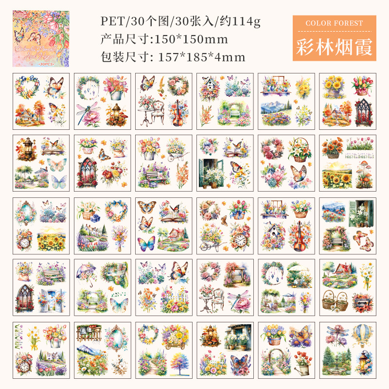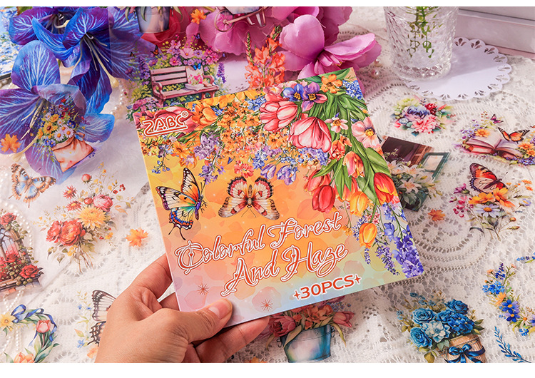 안개락 산 꽃 창조적 인 스티커 스티커 책 나비 손 계정 소재 DIY 스티커 도매 국경 특별스토어 가기