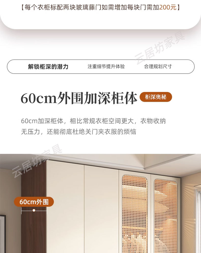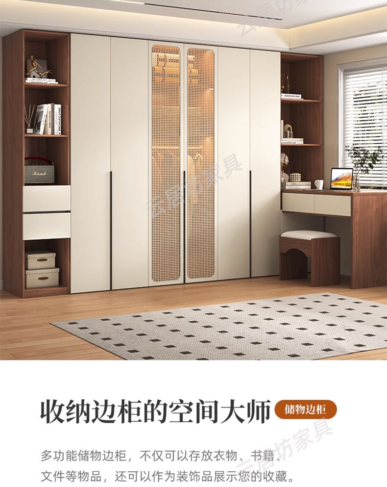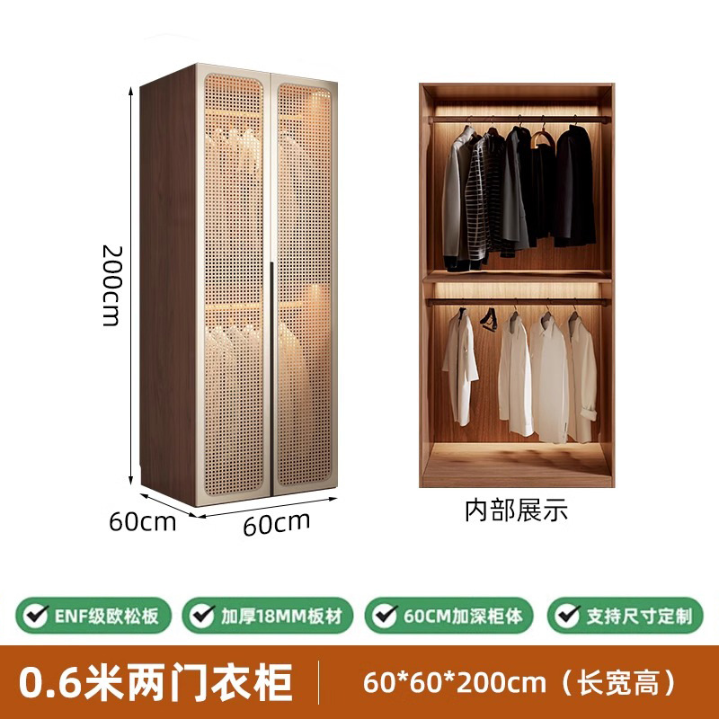등나무 원목 옷장 침실용 가정용 플랫 도어 옷장 수납 옷걸이 공간 친환경 수납장