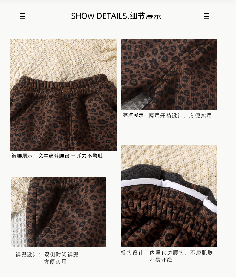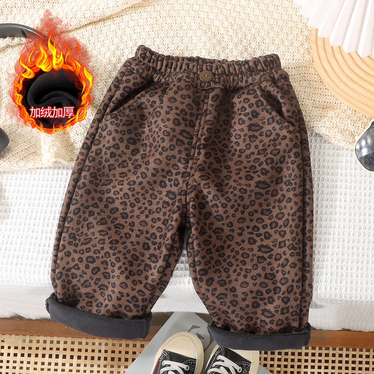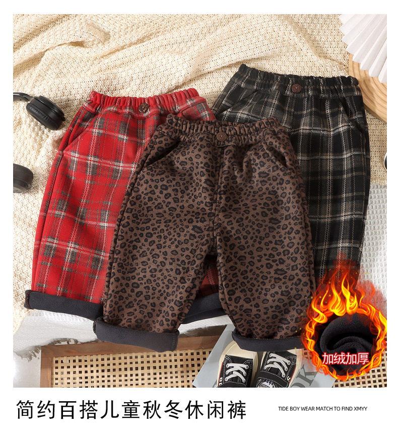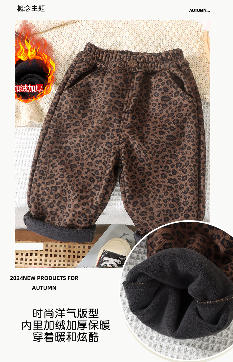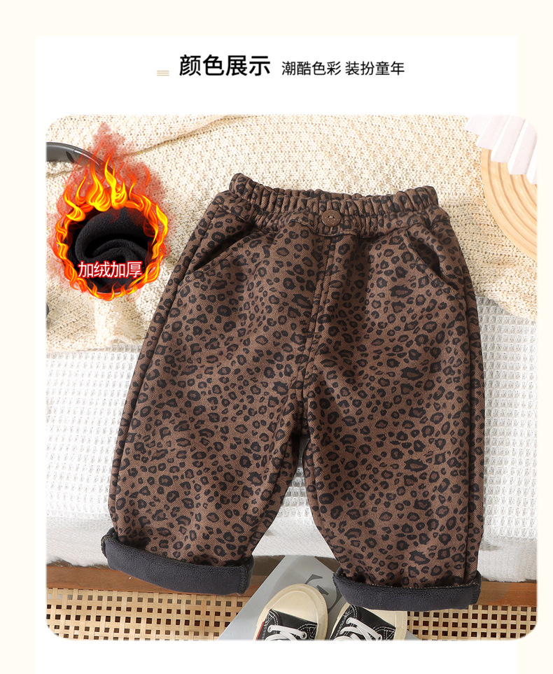 어린이 레오파드 무늬 바지 겨울 캐주얼 바지 아기의 스트레이트 원피스 벨벳 바지 아기 가을과 겨울 기모 소년 소녀