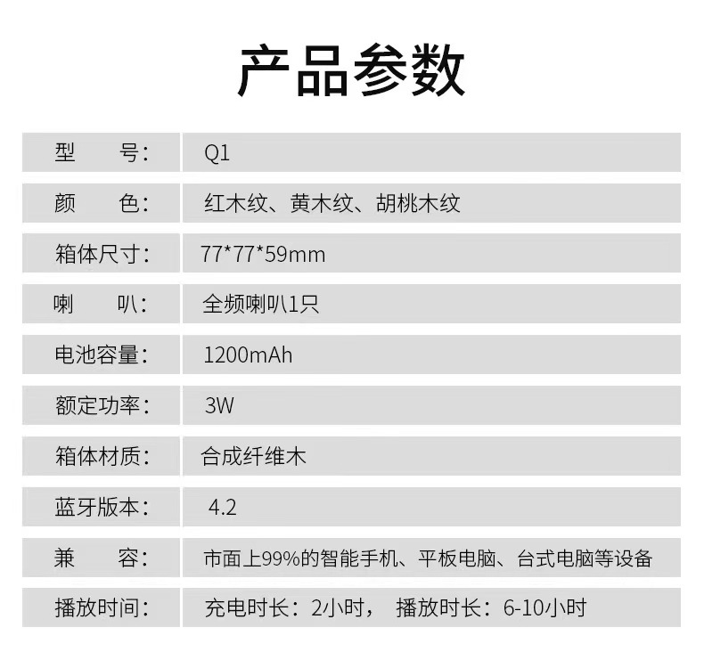 Q1 나무 미니 블루투스 스피커 휴대 전화 휴대용 창조적 인 선물 작은 스테레오 외부 고출력 서브 우퍼