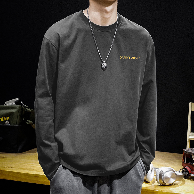200g 무거운면 긴팔 티셔츠 느슨한 남성과 여성의 순수한 흰색 T-넥 가을과 겨울 밑바닥 셔츠면 재킷스토어 가기