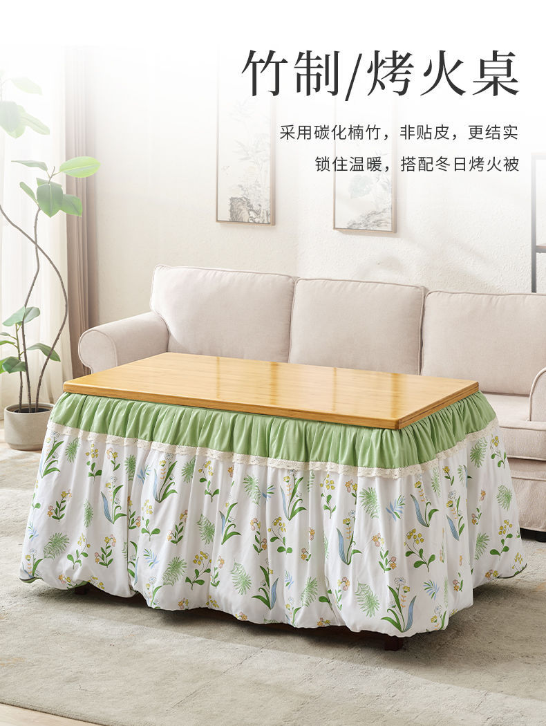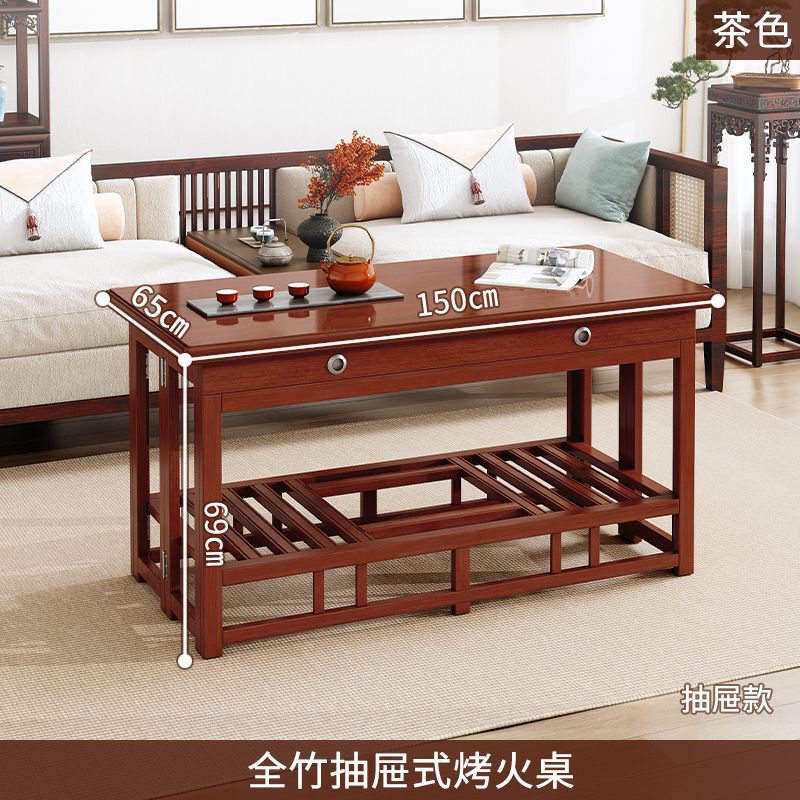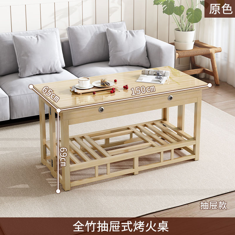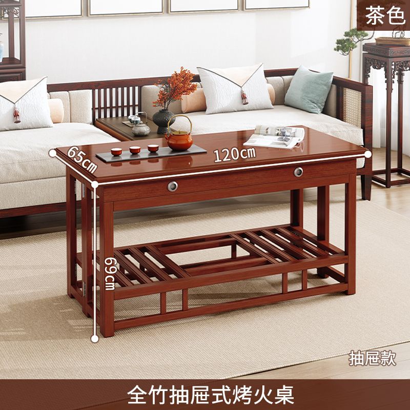 모든 대나무 직사각형 열 유지 테이블 이동식 및 세척 가능한 홈 거실 커피 테이블 난방 다기능 책상