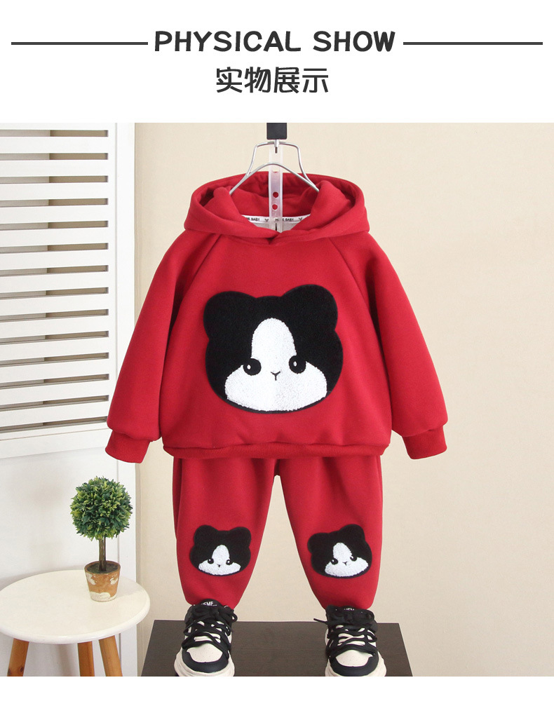 6979 소년 양털 스웨터 세트 2025 가을, 겨울 새 아기 두꺼운 풀오버 어린이 스포츠 투피스 세트스토어 가기