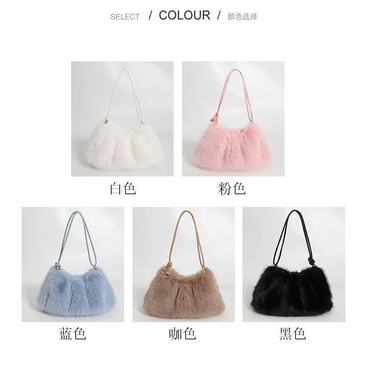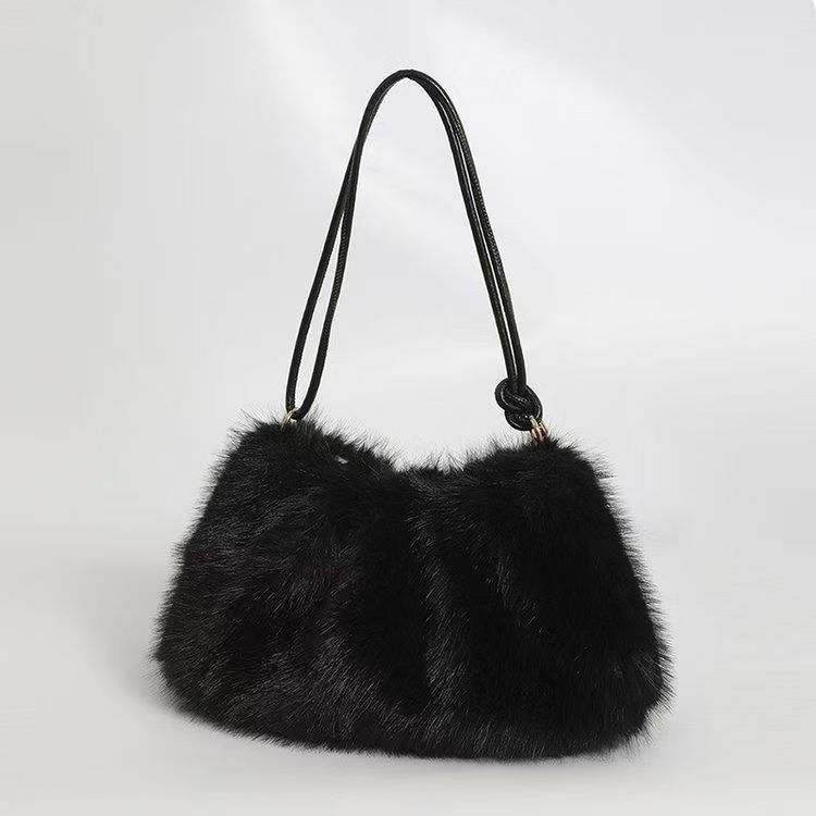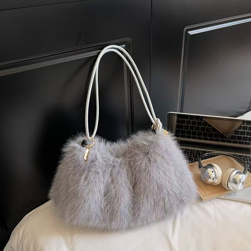 여성을위한 모피 가방 2025 가을, 겨울 새로운 패션 간단한 모피 숄더 백 질감 숙녀 휴대용 토트 백스토어 가기