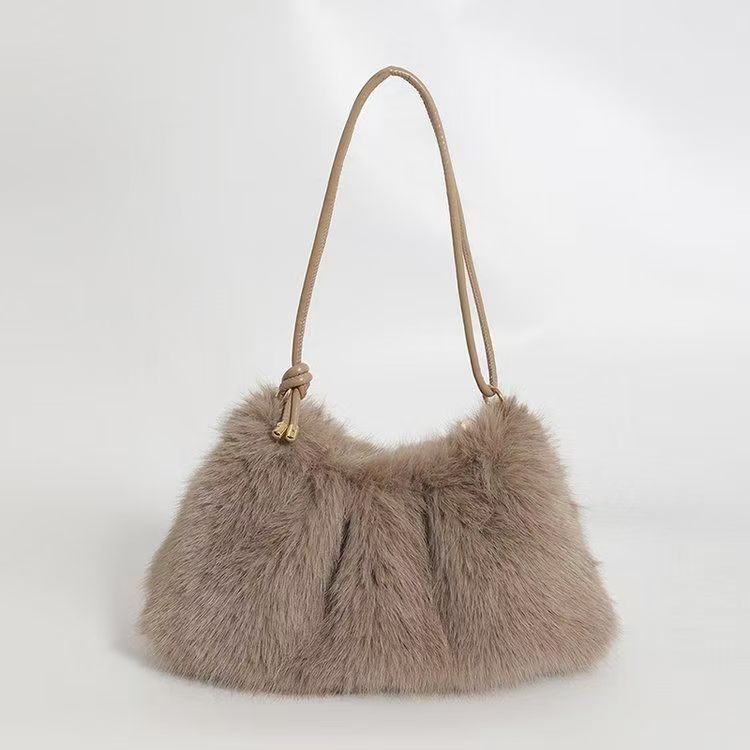 여성을위한 모피 가방 2025 가을, 겨울 새로운 패션 간단한 모피 숄더 백 질감 숙녀 휴대용 토트 백
